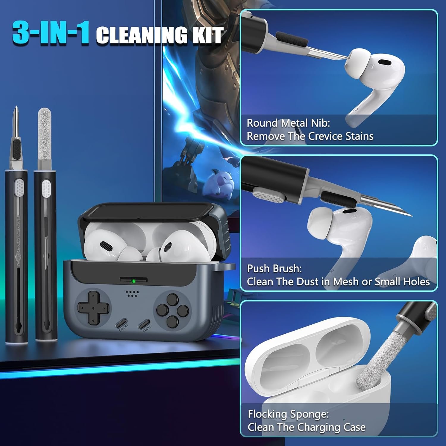 【with Lock】 Inesore for Airpods Pro 2nd Generation Case with Cleaner Kit,Compatible with AirPods Pro 1st 2019 and Airpods Pro 2nd 2023/2022,Classic Handheld Game Console Design Protective Case(Black)
