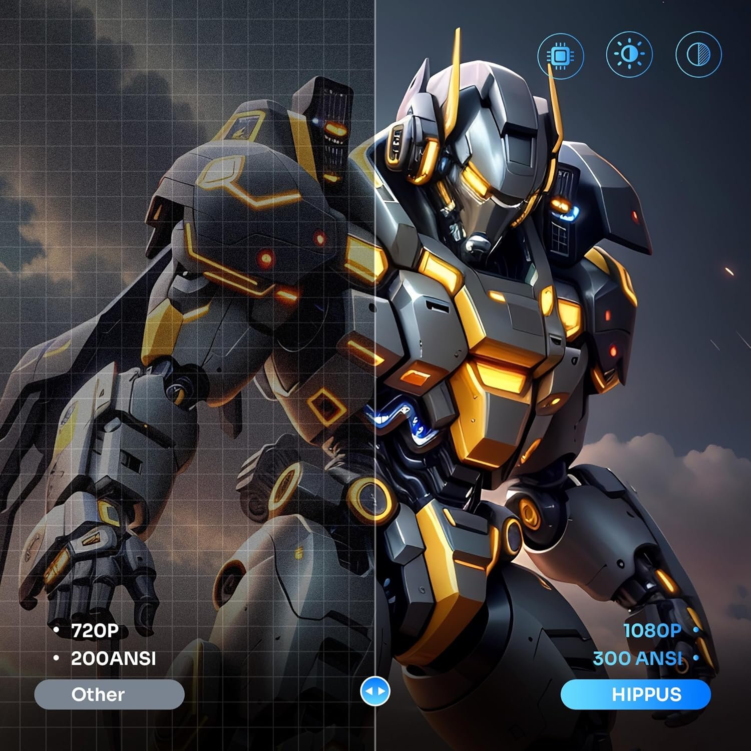 【1080P/4K HD Quality】Experience crystal-clear visuals with our mini projector, supporting native 720P, 1080P, and 4K HD video. With a 12,000:1 high dynamic contrast ratio, it’s designed to deliver stunning visual effects that enhance your viewing experience.