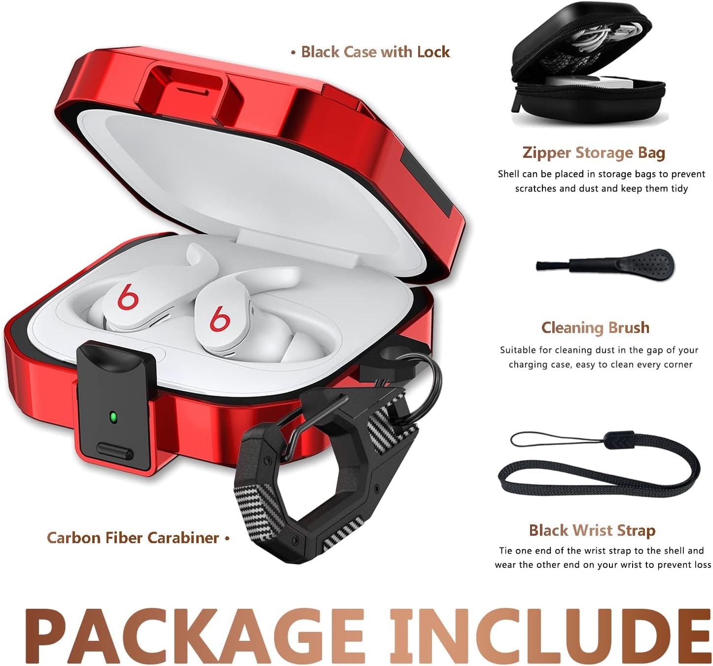 Compatible Models: The Beats Fit Pro Case Cover with lock specially designed for Beat Fit Pro 2021 charging case. Not compatible with Beats PowerBeats Pro 2019 and Beats Studio Buds 2021; Not including Beats fit Pro 2021 charging case