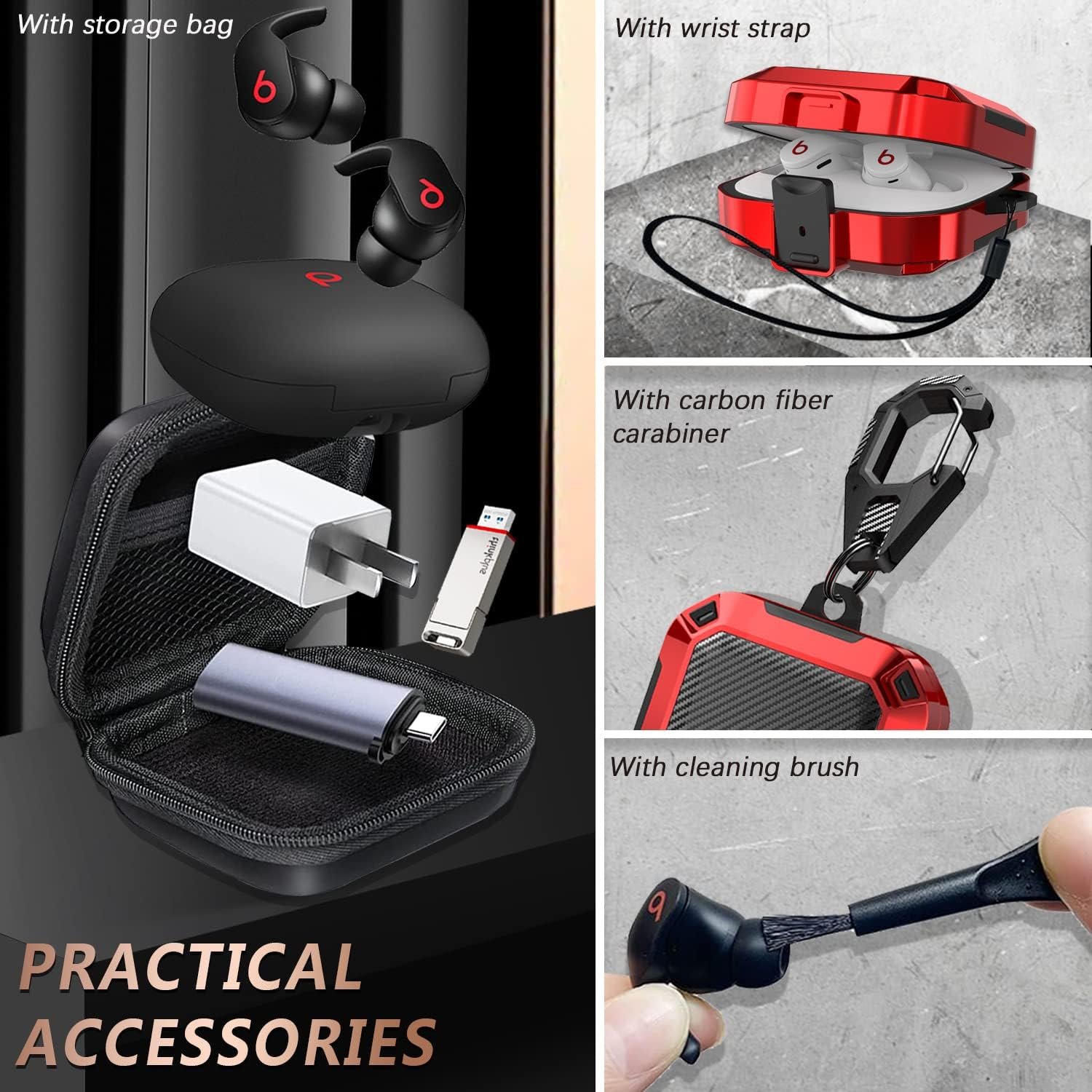 Package Included: 1 Pack Blue Beat Fit Pro Case Protector, 1 Carbon Fiber Keychain, 1 Pack Storage Box, 1 Black Wrist Straps ,1 Cleaning Brush; [Warm Tips] : we offer a 24-hour online service. if you are have any problems about product, you can tell us at any time