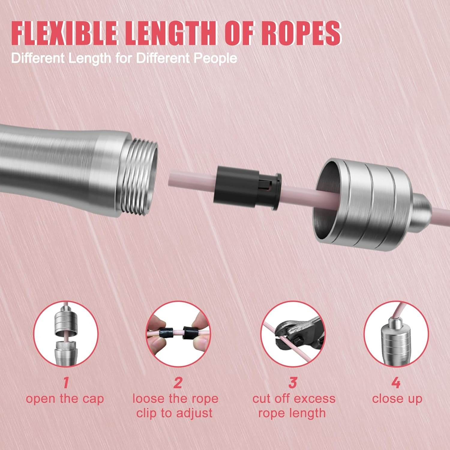 ใ€DURABLE & ADJUSTABLEใ€‘Our jump rope is made of 8 strands of steel wires that are coated with wear-resistant PVC material making it durable and unbreakable even after a long time exercising. 9.2 feet adjustable skipping rope, enables you to customize the length according to your needs with our easy-to-use lock system and trim off the excess cord with scissors