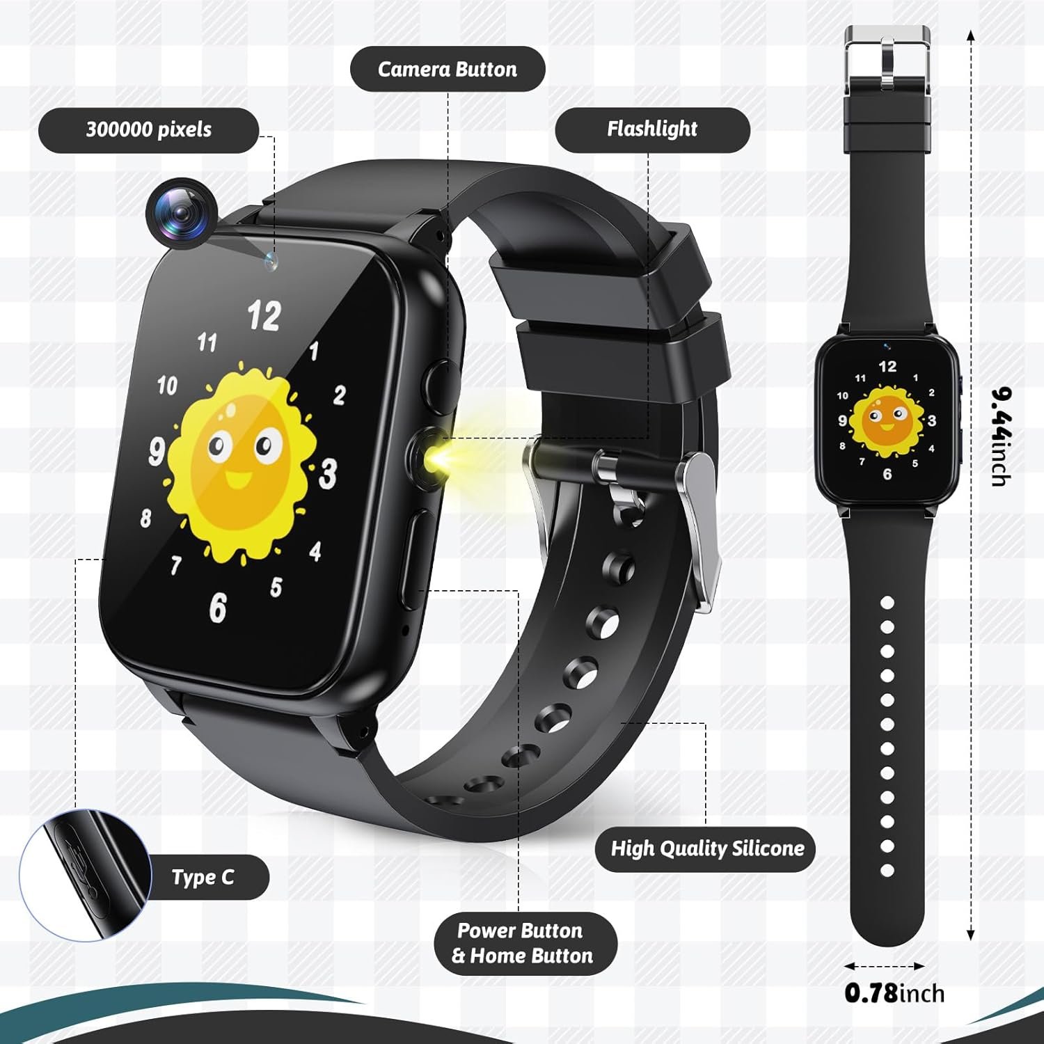 🎁 Ideal Holiday Gift: Featuring a 1.69-inch HD touchscreen, this smartwatch is perfect for kids aged 3-12. A thoughtful gift for Christmas, birthdays, and more, backed by professional customer support for a delightful experience.