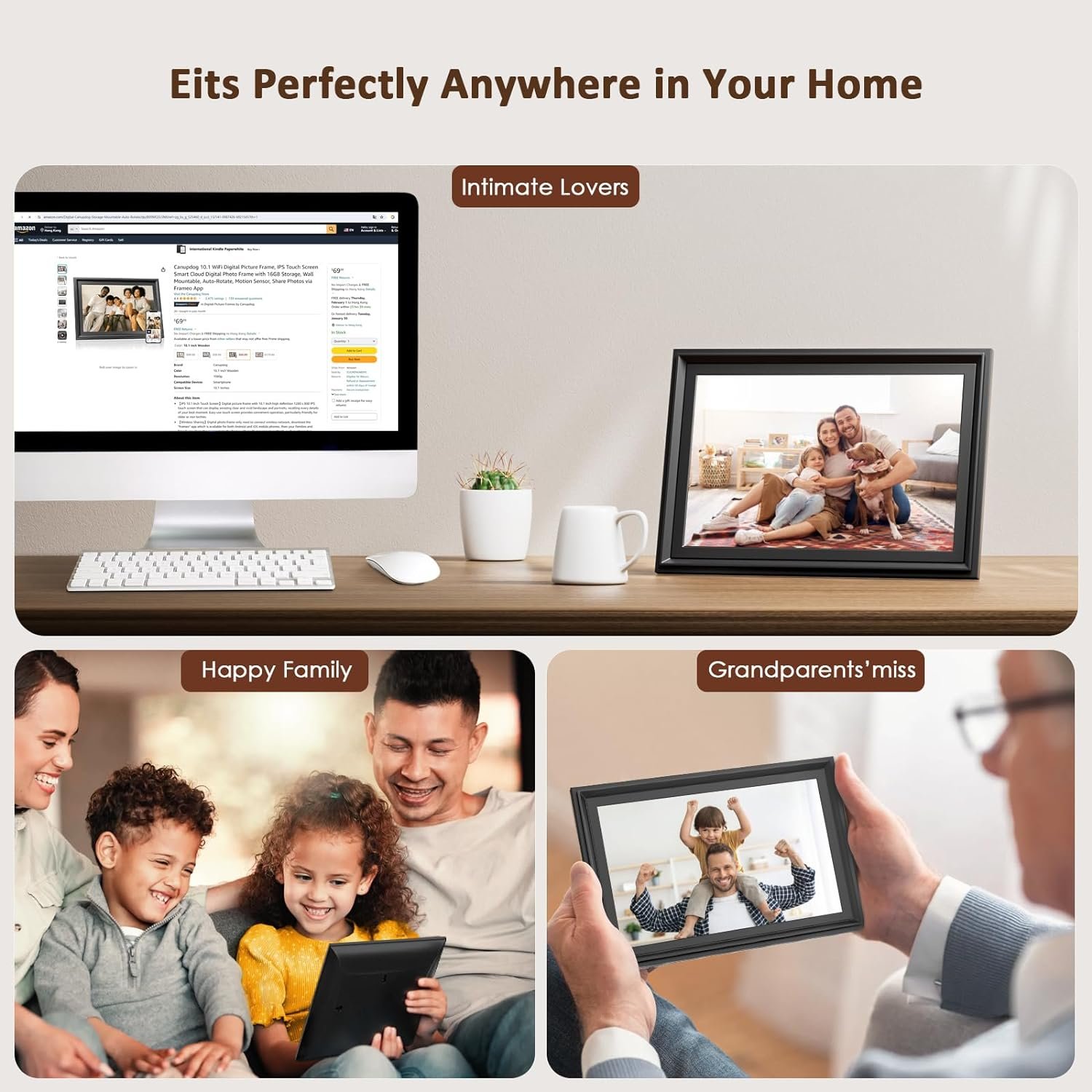 【Great Gift for Any Occasion】Canupdog digital picture frames Perfect for Mother’s Day, Father’s Day. They are an excellent gift for grandparents, parents, gifts for women, or anyone who wants to share the most memorable moments with their family. Wifi digital photo frame allows multiple family members to upload photos using their own smart devices, the perfect gift for Mother’s Day, Father’s Day, birthdays, weddings, Christmas, graduations, and any occasion.
