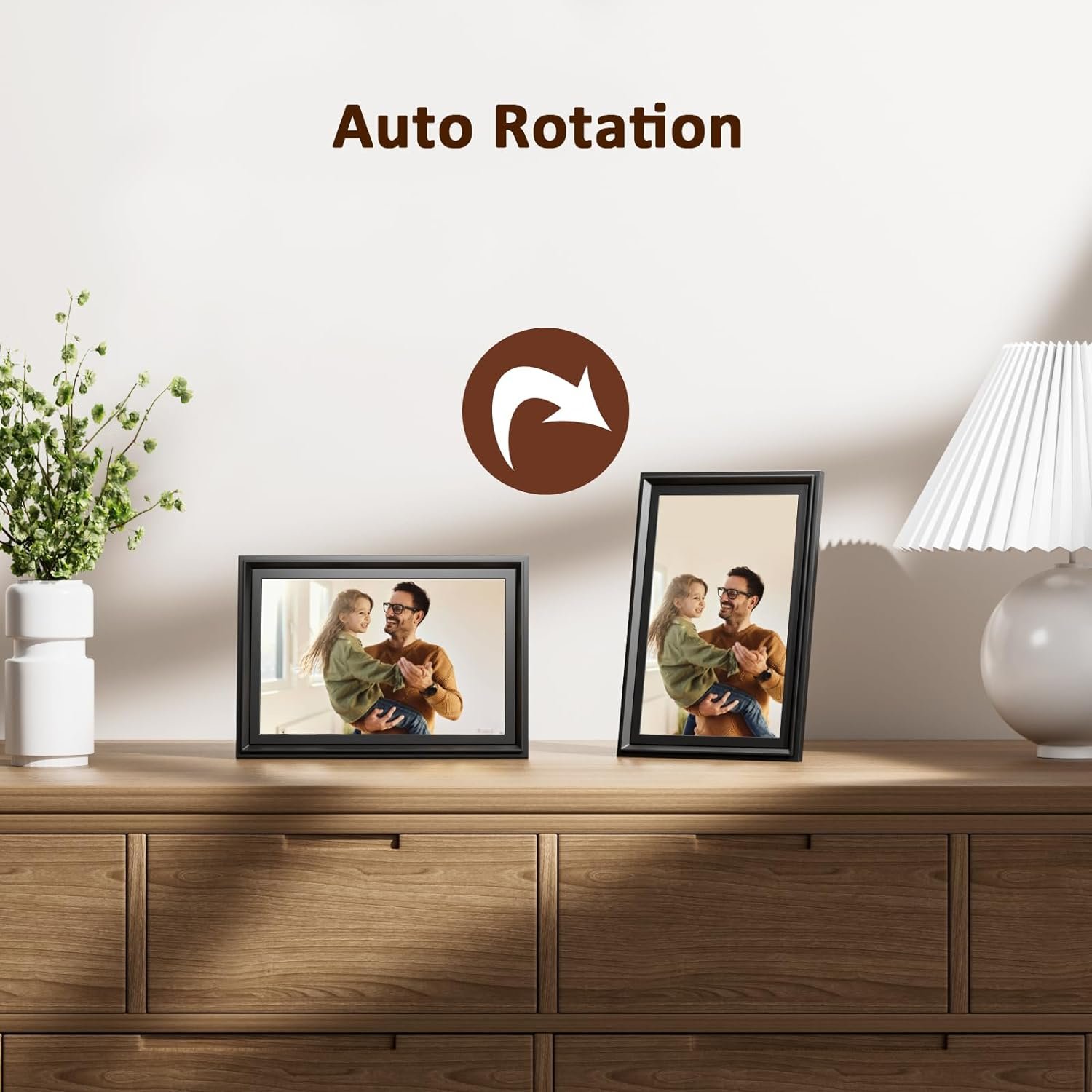 【Auto Rotate&Sleep Mode】With the detachable rack as the frame stand, the digital picture frame can be positioned vertically or horizontally. The digital photo frame will automatically rotate photos to adjust them according to the frame positioning. The frame can be also mounted on the wall. Choose your favorite way for placement and make the digital picture frame your other new and beautiful home decor. The customized sleep mode setting provides a better viewing experience.