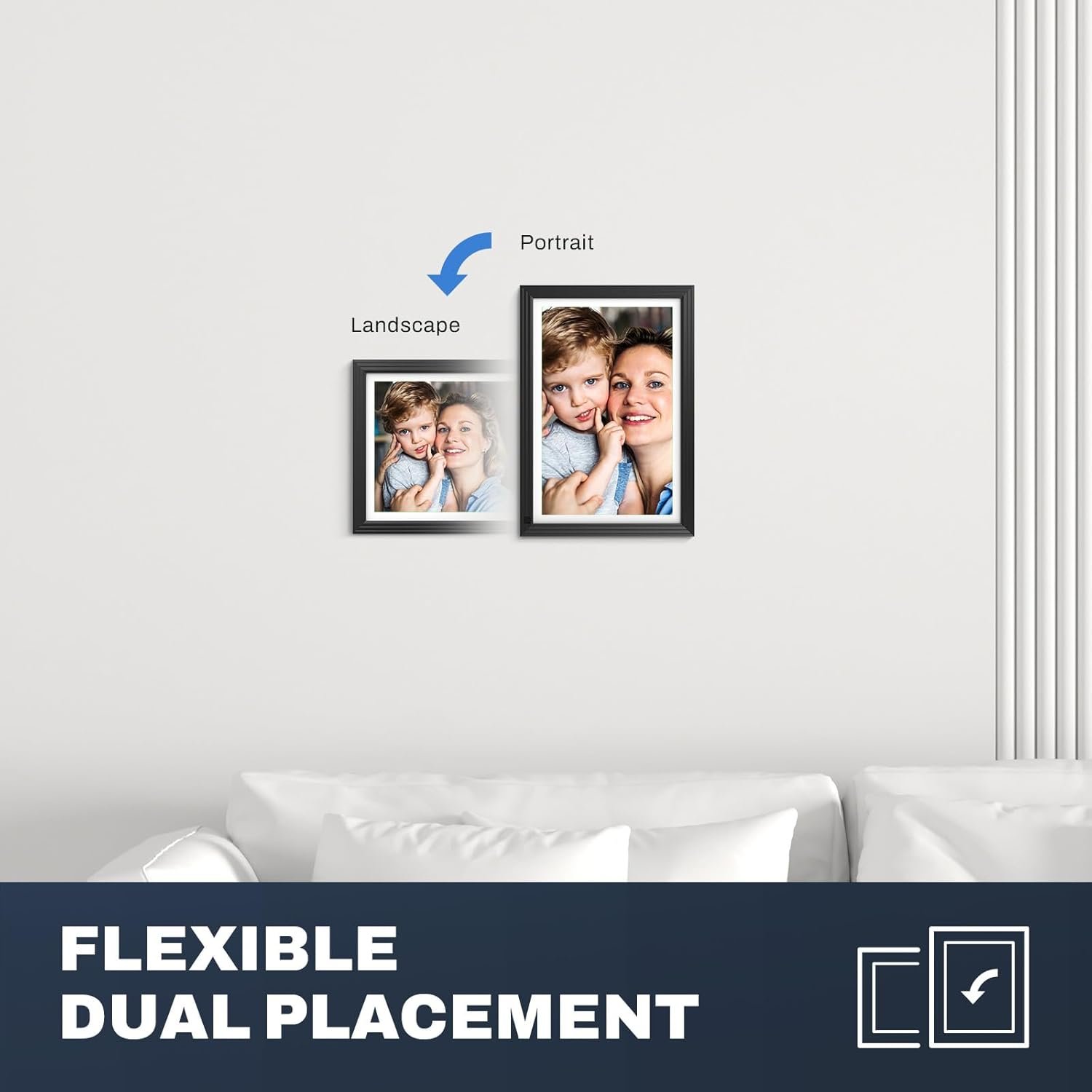 【Light Sensor and Auto-Rotation】 The light sensor enables the digital frame to adjust the brightness automatically, giving you an exceptional viewing experience. WIFI digital frame can automatically rotate photos to adjust orientation, allowing you to place the digital photo frame in portrait or landscape mode or on a wall. When you rotate it from one orientation to the other, it will automatically adjust photos for the best fit.