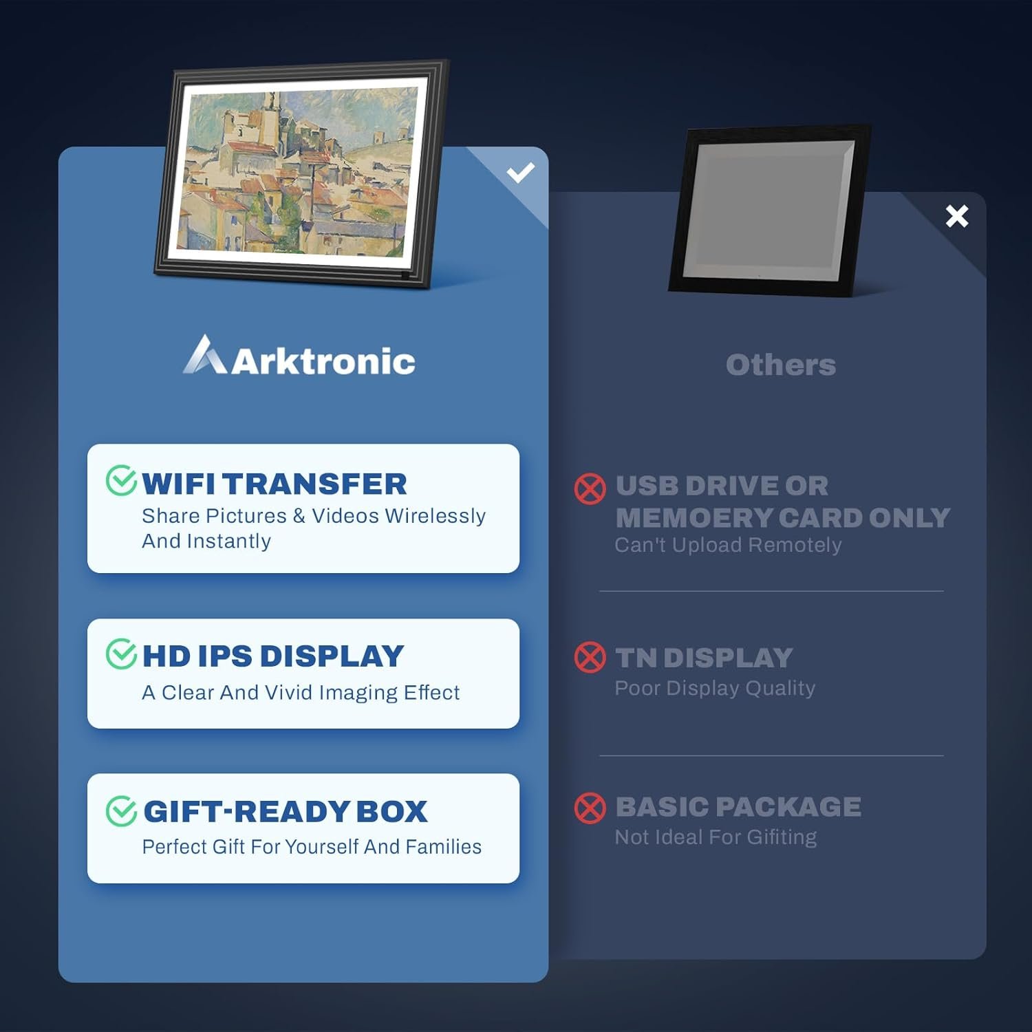 【Got It with Confidence】 Arktronic gurantee every customer 30-day money back commitment, 1-year worry-free warranty, life-time professional service. We are here to offer you only the best quality digital picture frame designed to contribute joy and fun to your life.