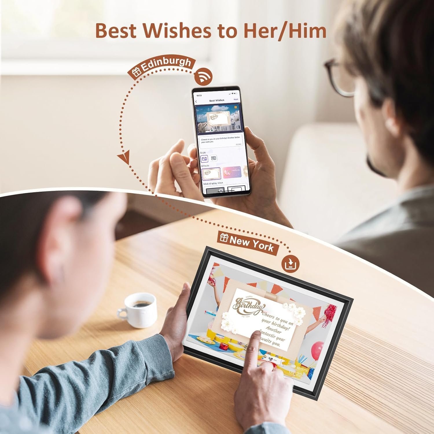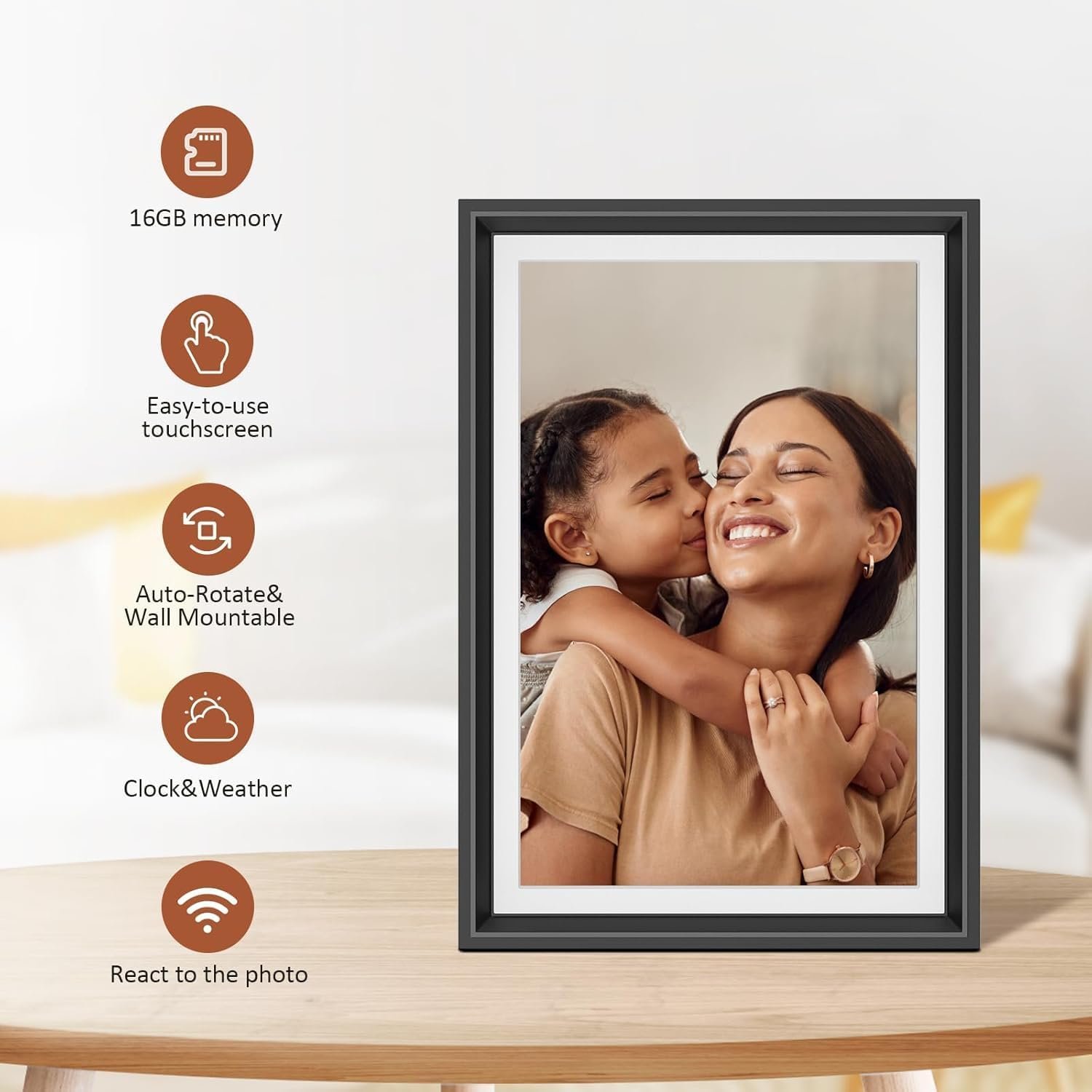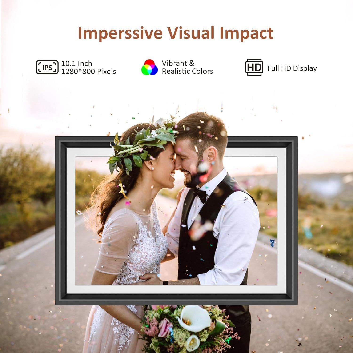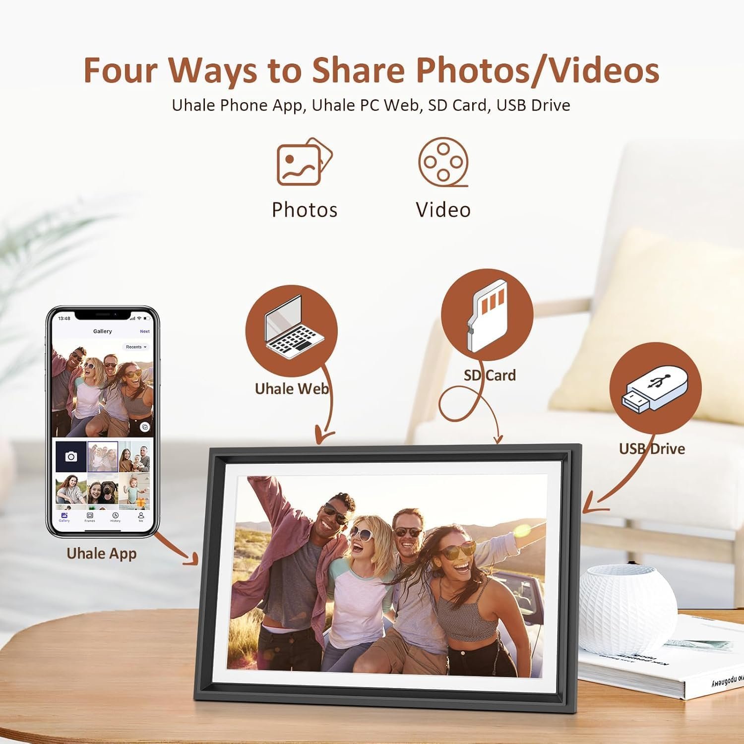 10.1 inch WiFi Digital Picture Frame, Touch Screen Smart Digital Photo Frame with 16GB Storage, WiFi Electronic Picture Frame Easy to Share Photos and Videos via Uhale App