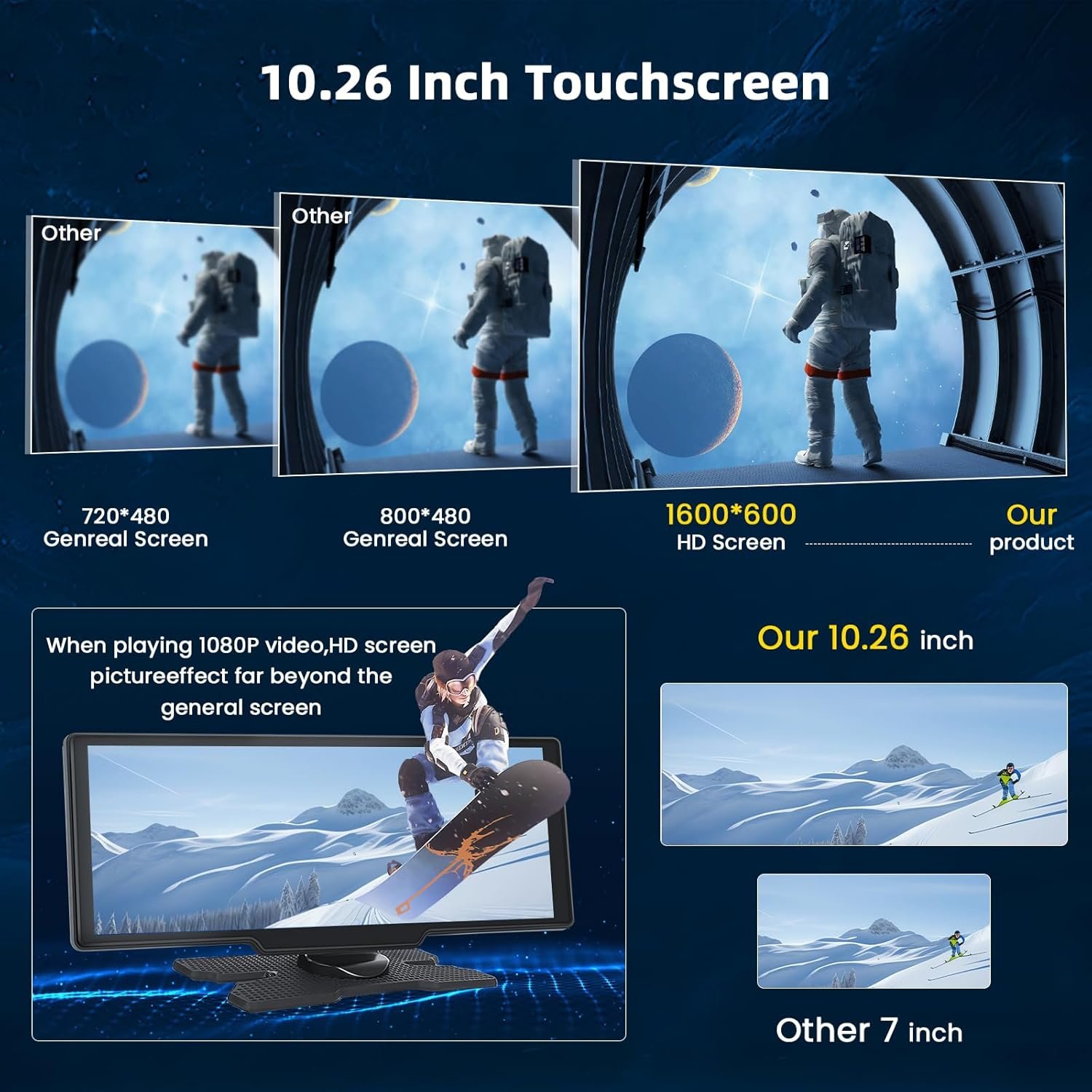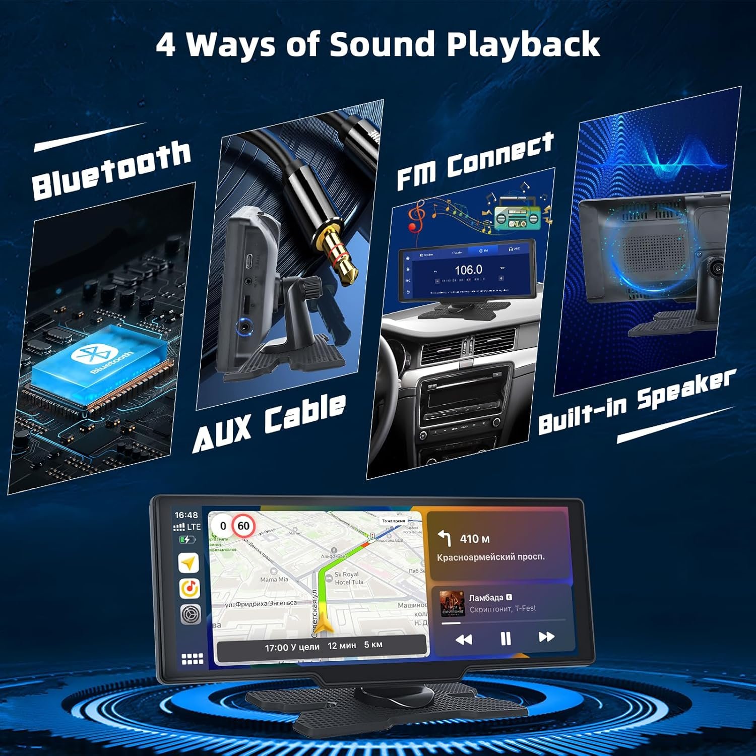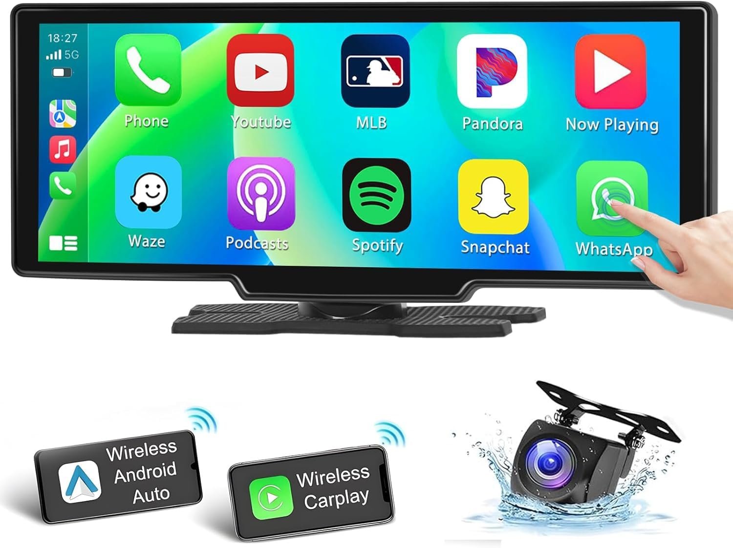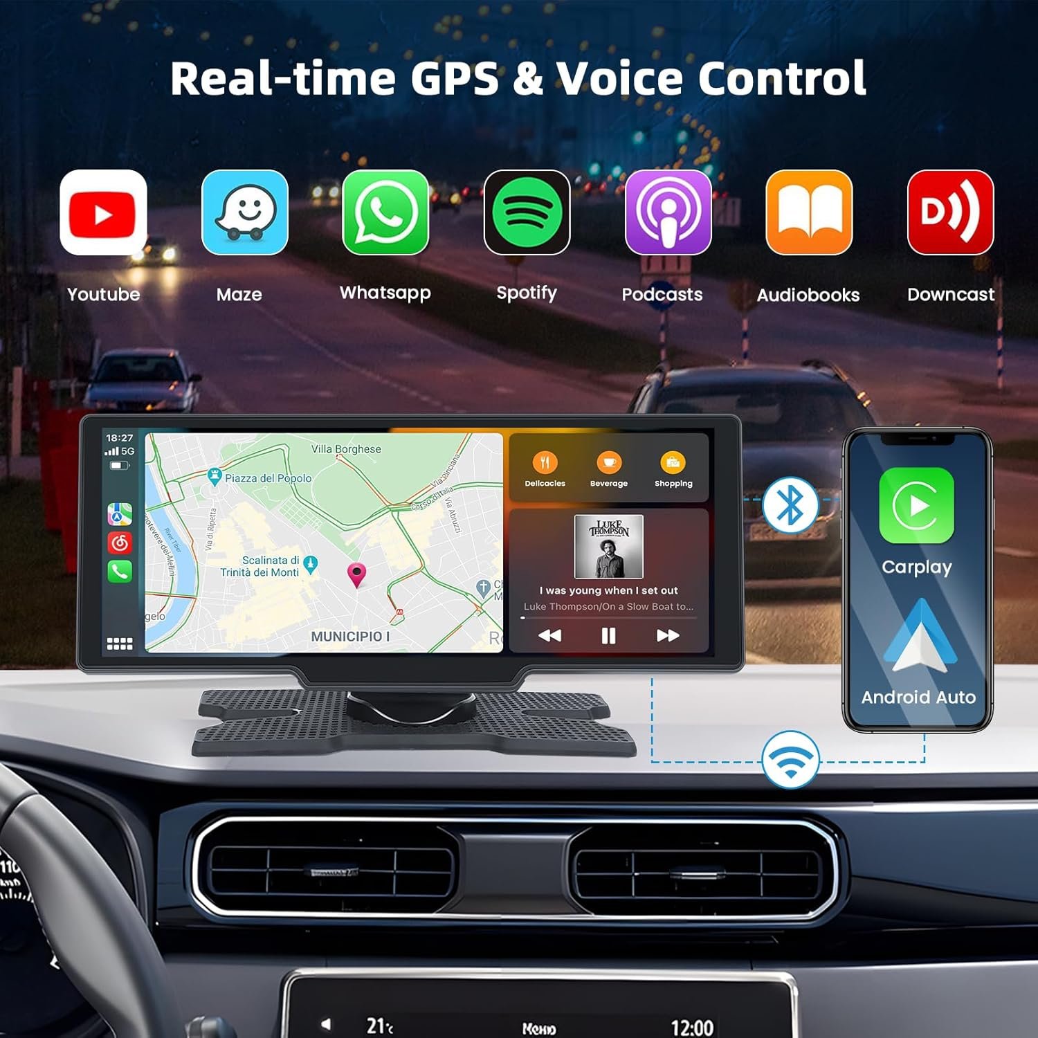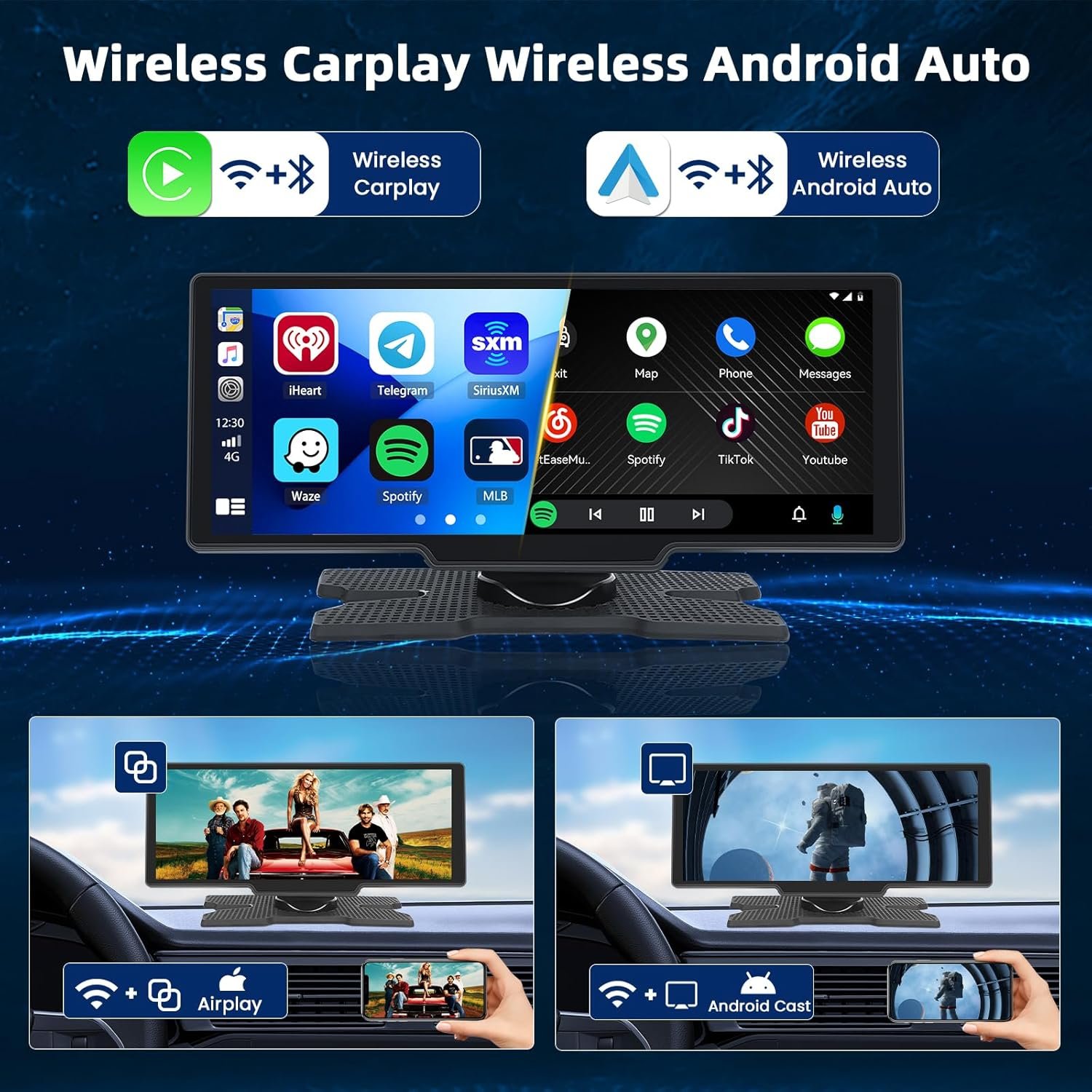 Wireless CarPlay & Wireless Android Auto: Portable carplay wireless car stereo can easily connects to your smartphones to enter another smart system and allows you to access phones maps, calls, messages, music, and more apps by wireless connection, much safer than using phones when driving
