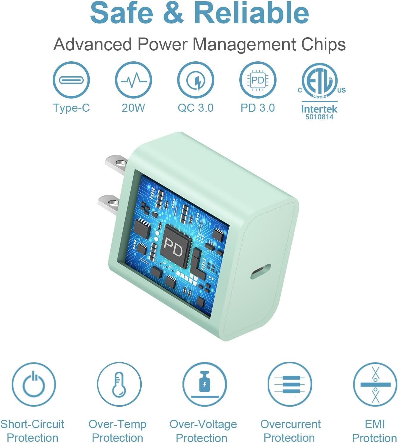 【iPhone 16 Charger】20W PD USB Type C power delivery wall plug, PD adapter 3.0 Quickly Charge , USB-C port provides Max 20W output power, 3X faster than standard USB charger. charging your up to 50% in just 30 minutes for iPad Pro Charging, At 3A Maximum, Helps You Work Efficiently.