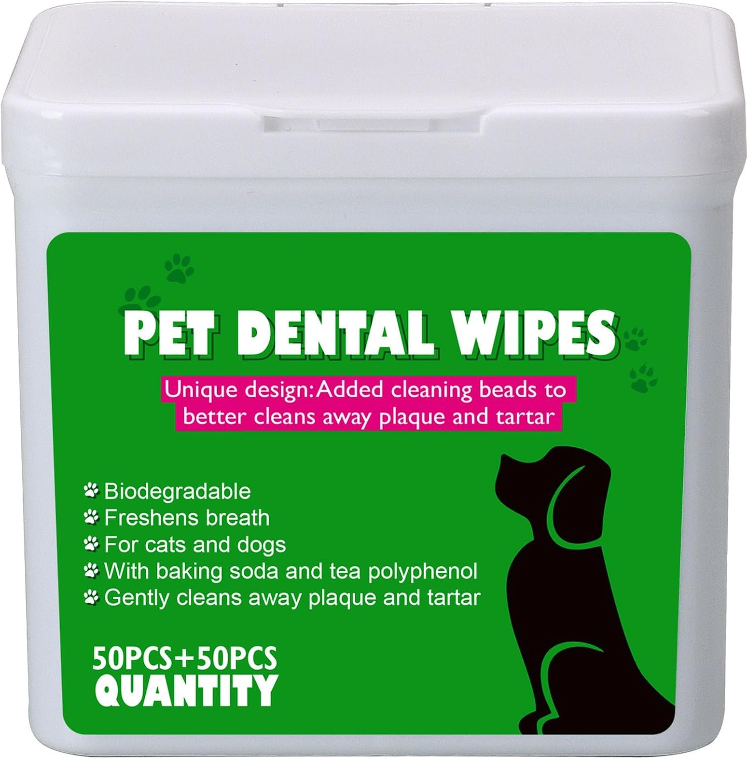 100 Counts Teeth Cleaning Finger Wipes for Dogs & Cats, Dog Dental Wipes, Reduces Plaque and Tartar Buildup & Freshens Breath, No-Rinse Dog Finger Toothbrush, Gentle Cleaning & Gum