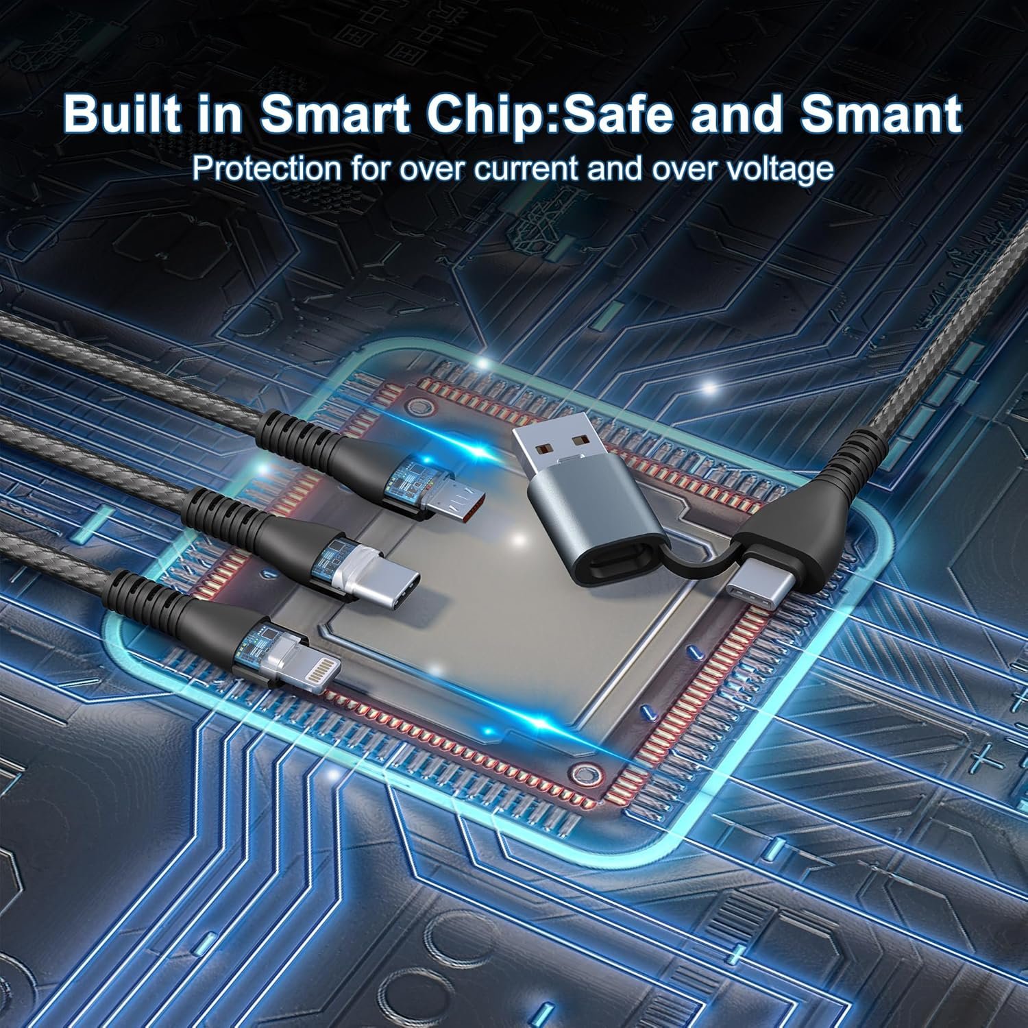 Apple MFi certified multi charger cable: USB multi charging cable 3M supports charging multiple devices at the same time. The charging cable multiple ends contains an authorized chip to ensure 100% compatibility with iPhone. High-purity copper wire and thickened copper cores, triple shielding ensure long-lasting fast charging performance. The emark smart chip with 100W fast charging by automatically adjusting the power.