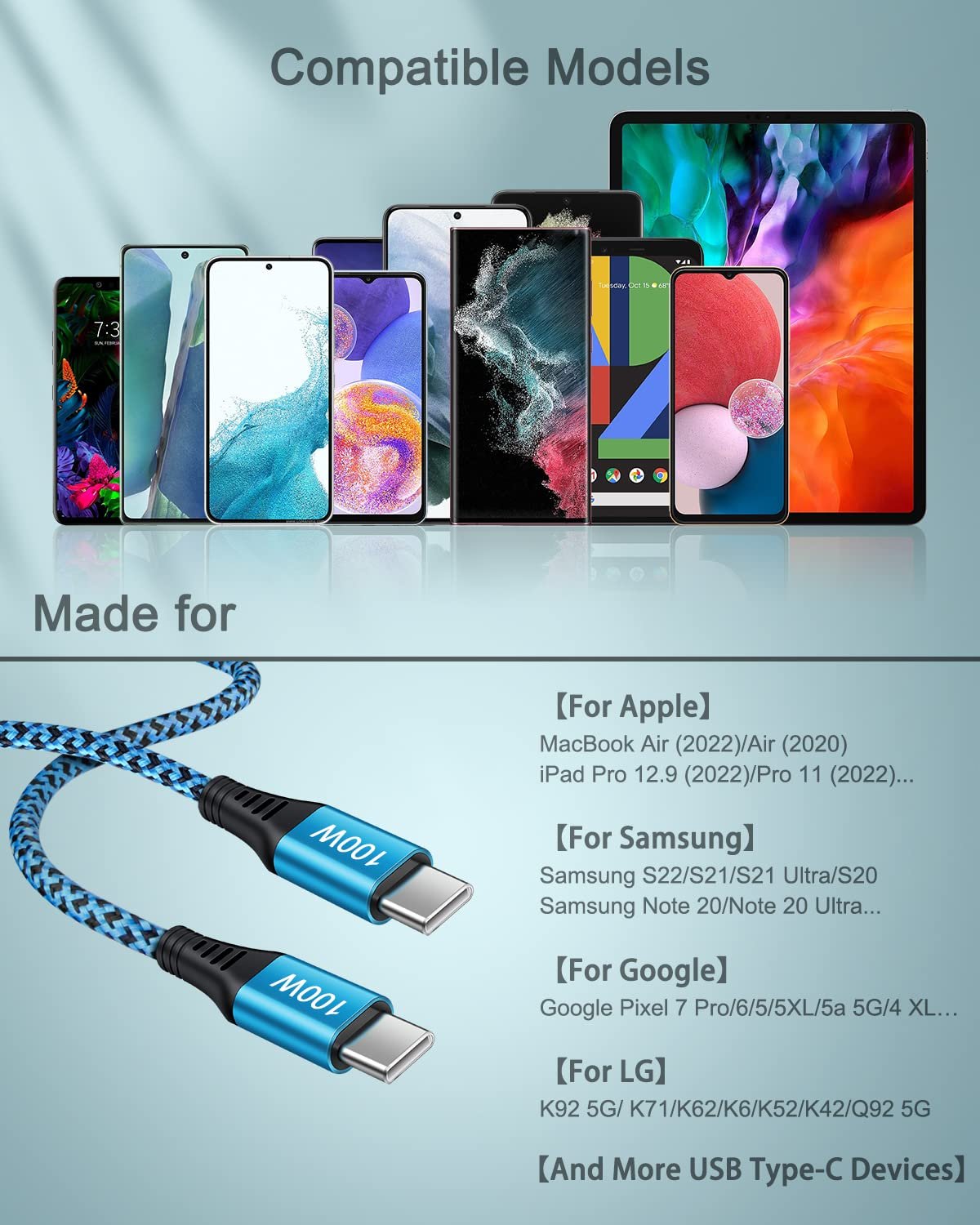 ![100W USB C Charger Cable, [2Pack/6ft] PD 5A Super Fast Charging Type-C to Type-C Cable Braided USB C to C Cord for Samsung Galaxy S24 S23 S22 Google Pixel 9 8 Pro iPhone 16 15Pro MacBook iPad Pro Air - Image 7](https://topleaseyou.store/wp-content/uploads/2024/10/71pn3lpQD7L._SL1500_.jpg)