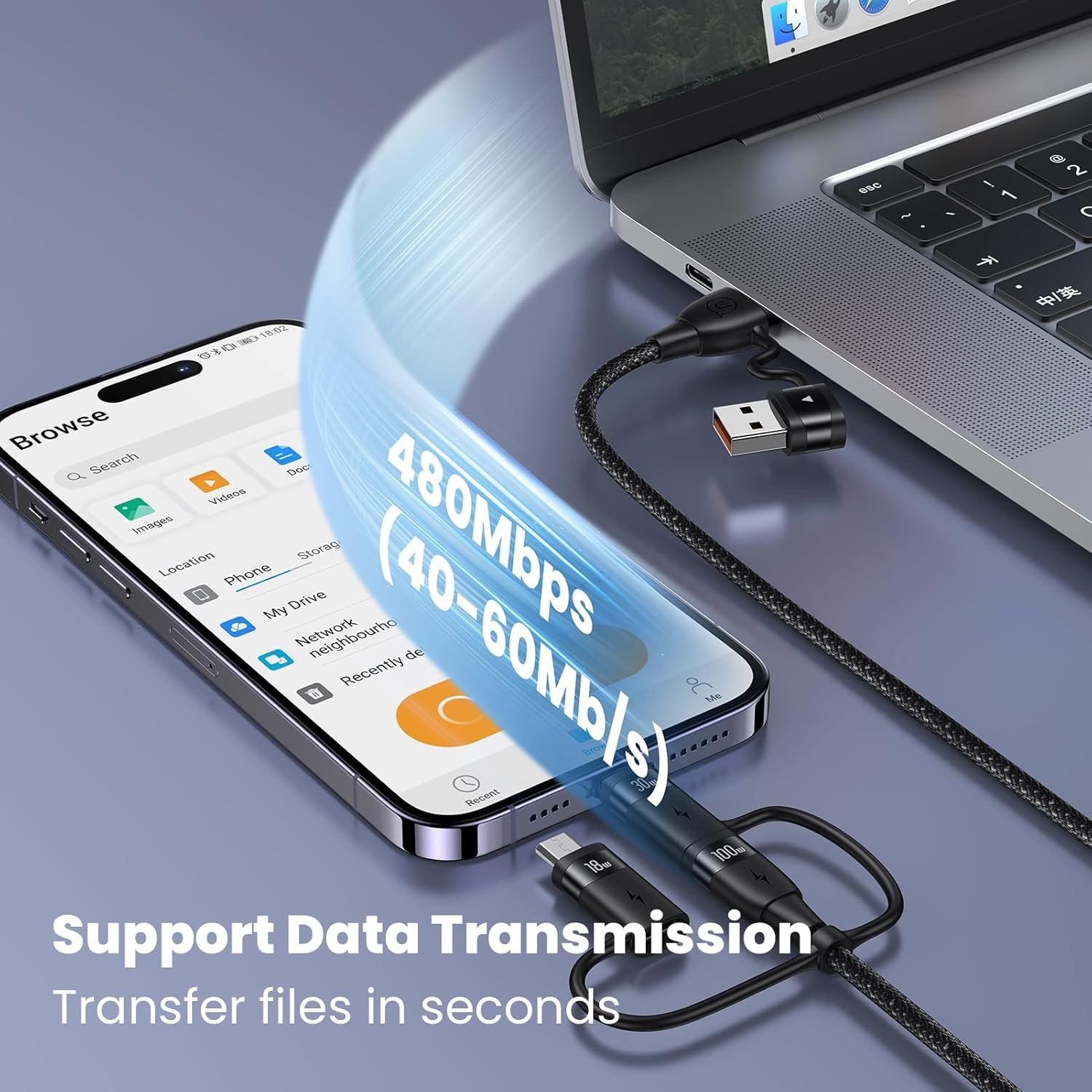 [480Mbps Data Transfer]- This multi charger cable can charge and transmit data simultaneously,with a theoretical transfer rates of up to 480Mbps, allowing you to transfer 1GB of movies, music, documents, or entire photo libraries in less than one minute.