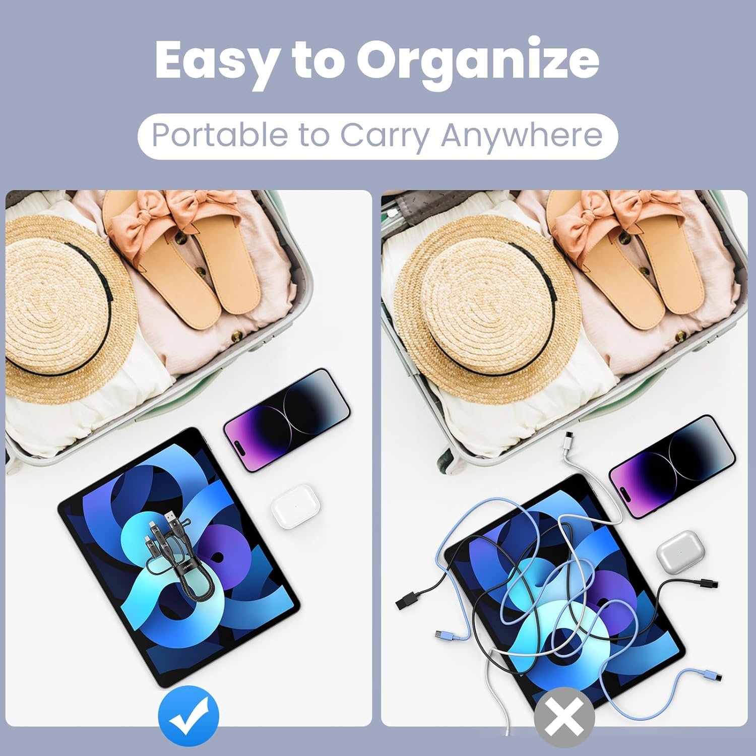 [Convenient Design] With the useful sticky buckles for storage, this multi cord charger is easy to carry, perfect for home, car, office or travel.Super organizerd and no more messy charging cords tangled and tugged.Just carry one usb c multi cable for all your charging devices, making your desktop and bag more tidy.