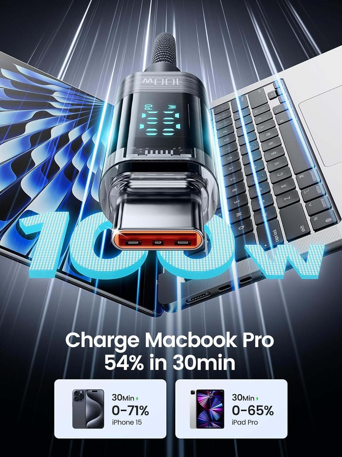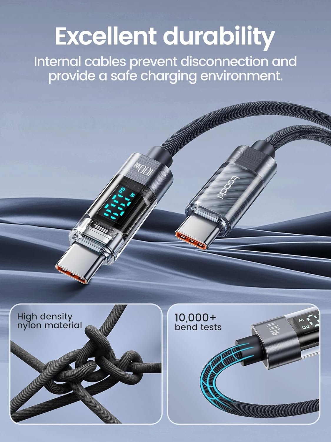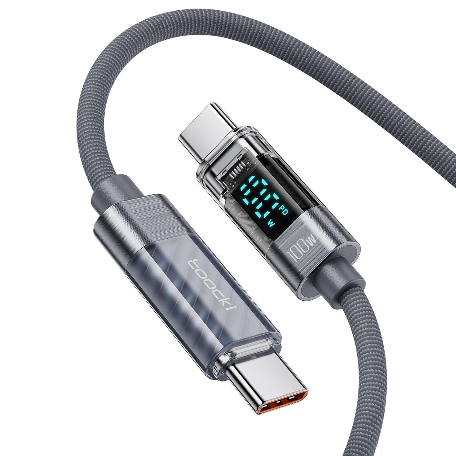100W HIGH SPEED CHARGING: toocki USB-C to USB-C cable with LED-display, which support charging speeds up to PD 100W/5A with a maximum charging power, full charge for a MacBook Pro 16ʺ in 2 hours, and this charger cord type c can charge most USB C devices including computers, tablets, phones, tablets and more