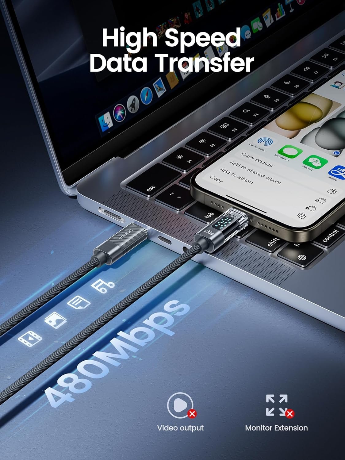 TRANSPARENT SHELL & DURABILITY: This 3.3ft usb c display cable has special transparent and aluminum shell to become oxidation resistant, You can see directly into the internals and the clear and bright display. The durable nylon usb c charger cable can withstand at least 36000+ times bending test