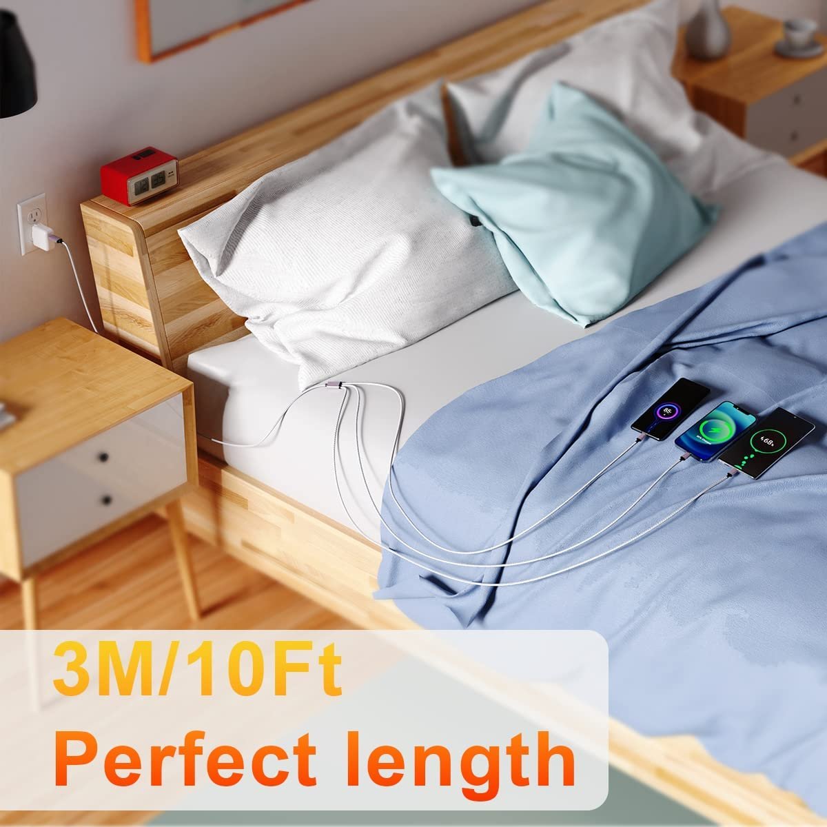 🔴【10ft Extra Long USB C Multi Charging Cable】10ft ultra-long design, Quanlex long usb c to multi charging cable is the ideal solution for long-distance charging and data transmission, perfect for bedroom, office, travel carry, elegant and comfortable lying on the sofa, car, outdoor, enjoy the unrestricted relaxation.