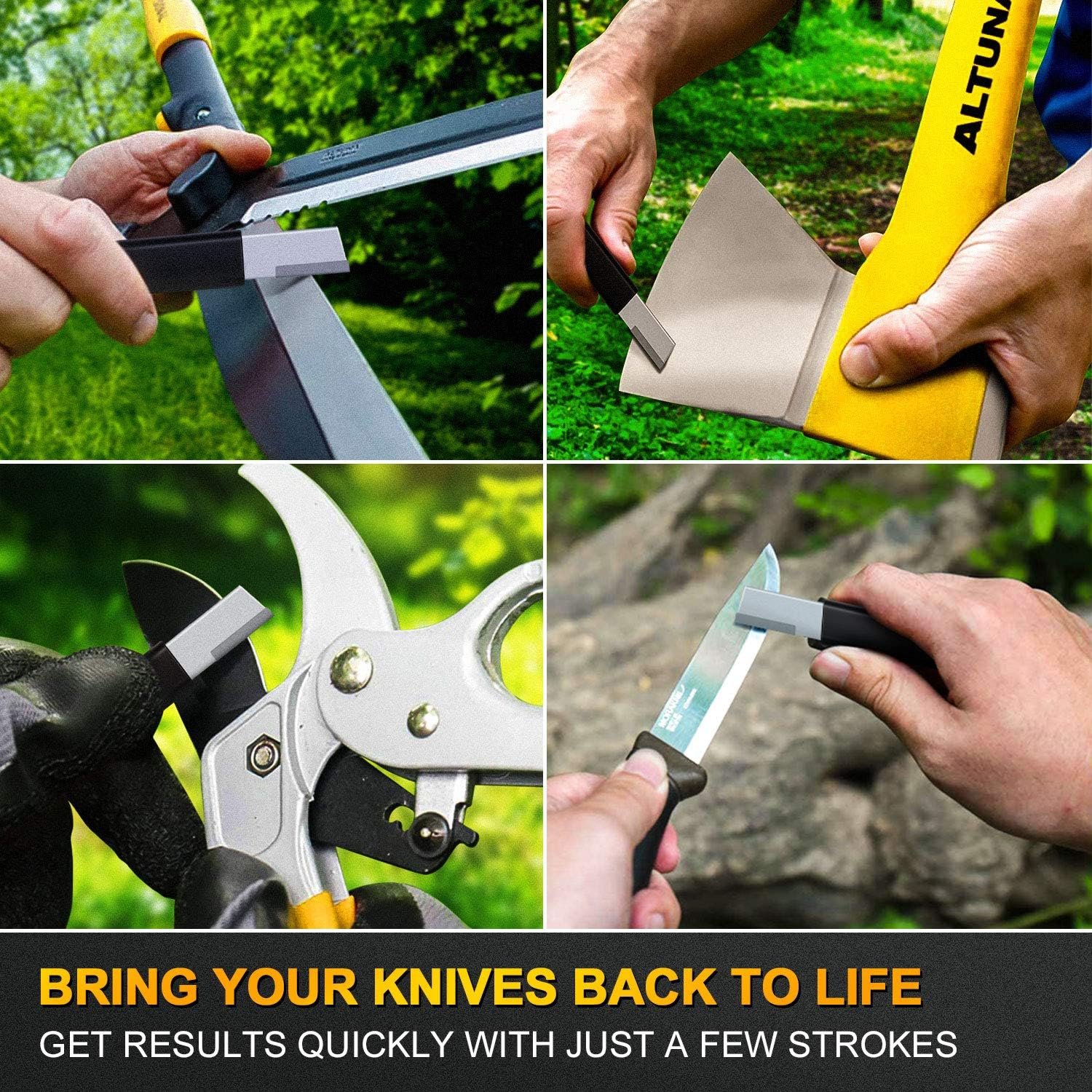 ➰【PRUNER AND KNIFE SHARPENER】Comes with a pocket pruner sharpener. It is made with long-lasting, hard sharpening tungsten carbide and ergonomic textured rubber handle to make sharpening your tools a breeze! Designed for sharpening blades of garden tools including secateurs, grafting knives, loppers and even lawn mower blades