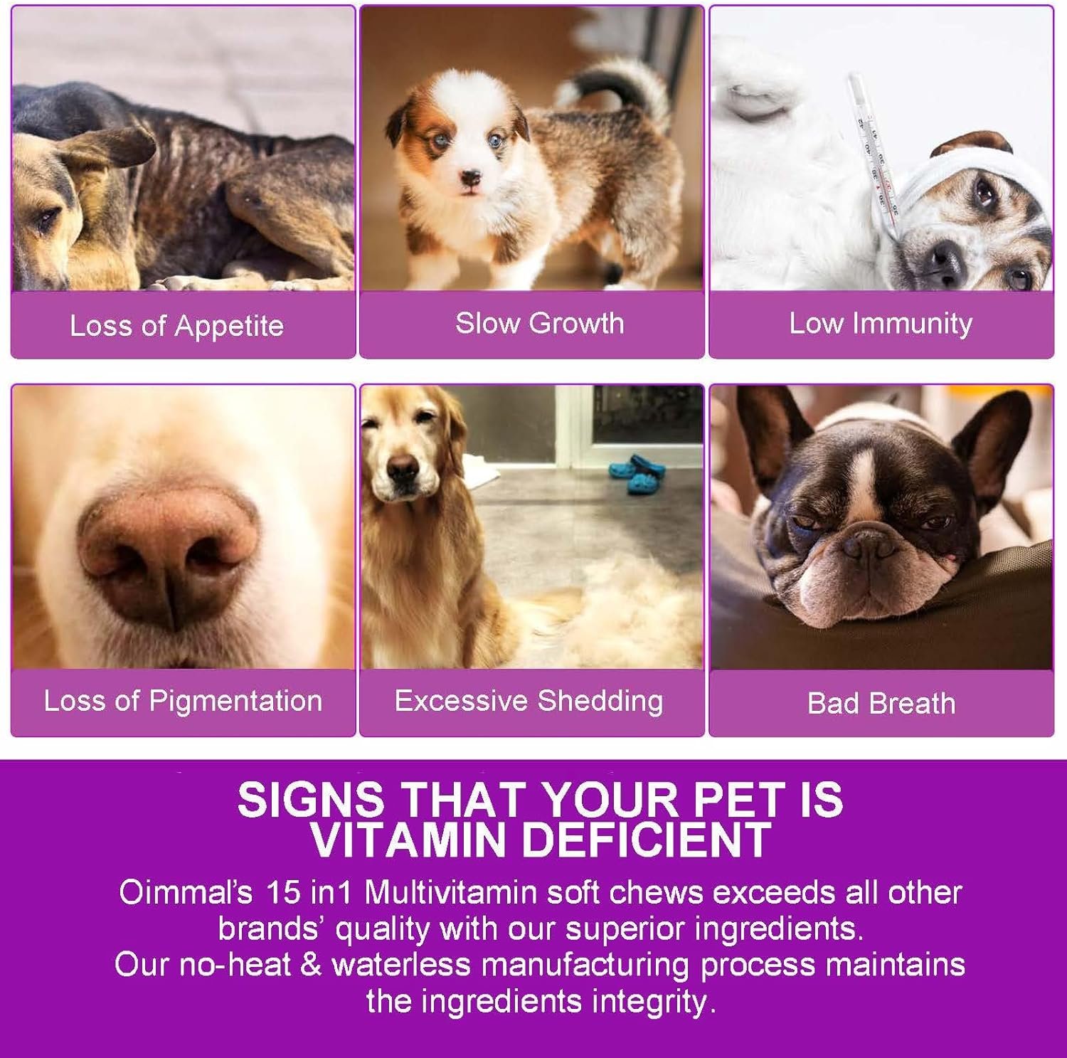 【15-IN-1 Dog Multivitamin】offers a unique and effective blend of dog supplements & vitamins, including 6 probiotics, glucosamine, promoting your pet’s overall wellbeing.