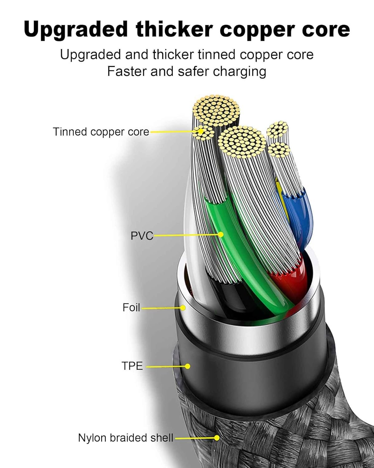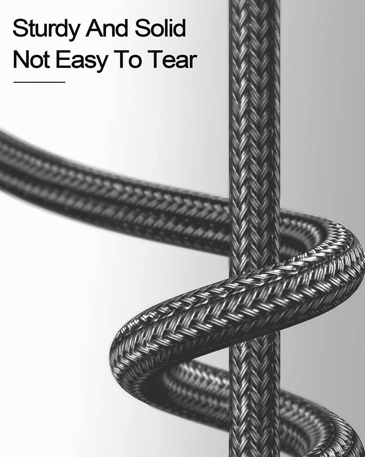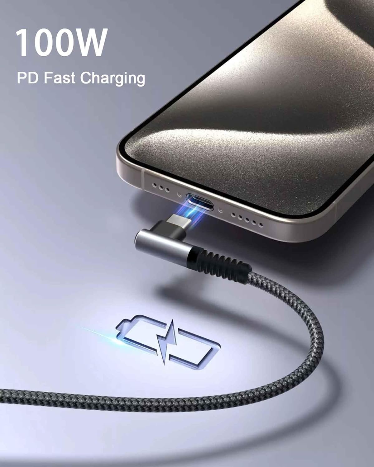 {Rugged}The 90-degree reinforced USB C cable features a special SR connector that lasts longer than ordinary cables. This braided nylon c-type fast charging cable has passed more than 20,000 bending tests for outstanding durability and flexibility.The C-type fast charging cable is laser welded to prevent metal parts from breaking, one of the toughest cables ever made.