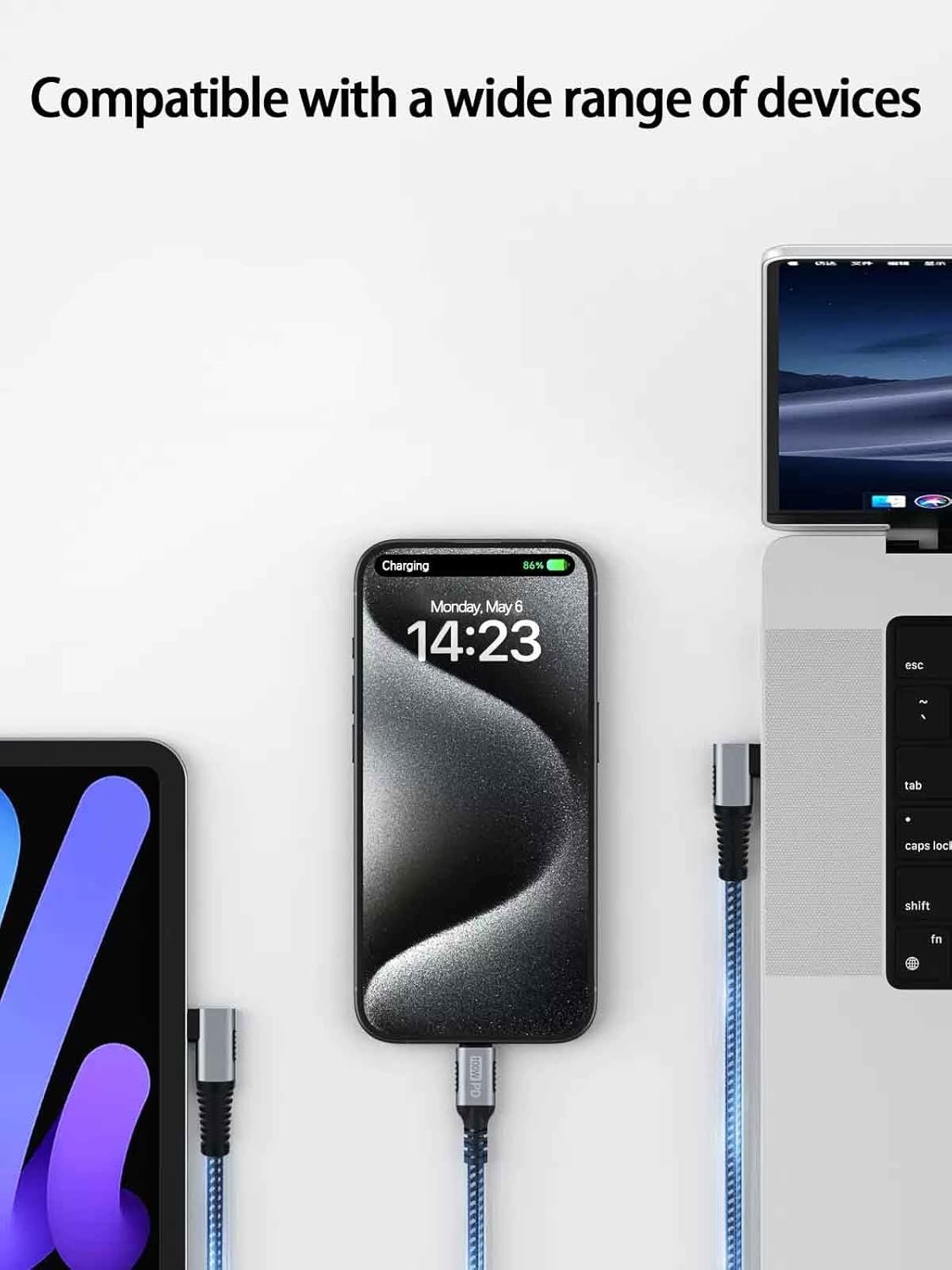 {Excellent Compatibility}This Type C to Type C cable is compatible with iPhone 15/15 Pro/15 Plus/15 Pro Max, MacBook Pro 2020/2019/2018, MacBook Pro/Air 13” 2022/2021/2020/2019/2018,iPad Pro/Air/Mini,Samsung Galaxy S24/S23/S22/S21/S21+/S21Ultra/S20/S20+/S10+/S10e/S10/S9+/S9/S8+/S8/Note 20/10, Google Pixel XL/2/2XL/3/3XL/3a/4 XL/5 XL, Google Chromebook, Pixelbook, Dell XPS/Latitude, Dell XPS 15/13, HP Spectre laptops and more Type-C device chargers with original USB-C.
