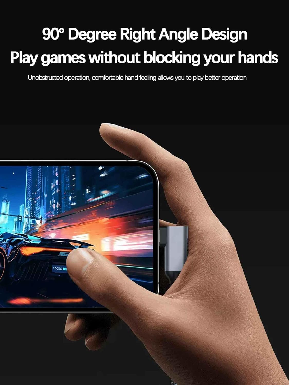 {Right Angle Design} This right angle Type C charging cable features an innovative 90 degree “L” design for fast charging. The ergonomic 90°, “L” shaped Type C charger provides the most comfortable grip, and its user-friendly design makes it easier and more comfortable to play games, watch videos, and read eBooks while charging. And the ultra-fast charger C-Type,is a great choice for gamers and video enthusiasts.