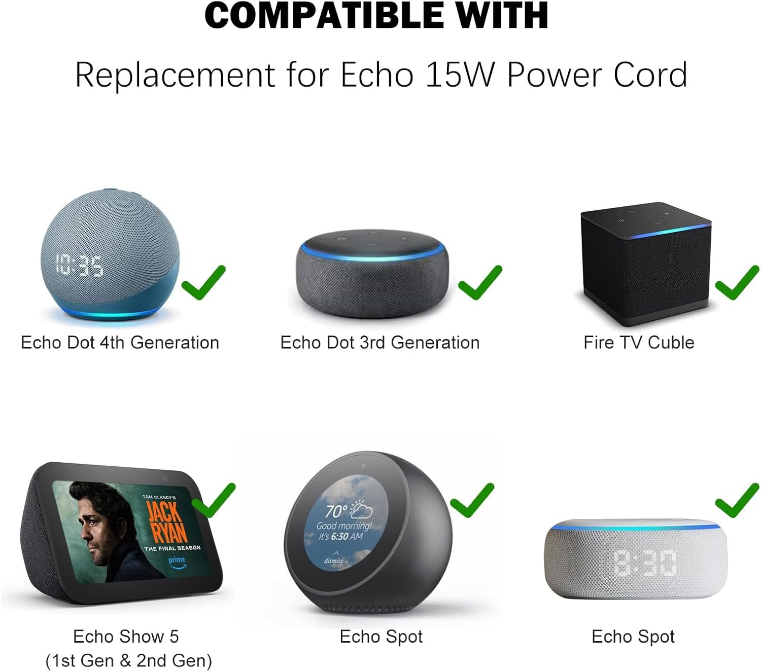 【Compatible】Replacement Power Adapter for Amazon Alexa Smart Device Echo Dot 3rd Generation, Echo Dot 4th Generation, Echo Dot 5th Generation, Echo Show 5 (1st & 2nd Gen), Echo Pop, Echo Spot, Fire TV Cube, Echo Dot with Clock and 3rd & 4th Gen Clock.