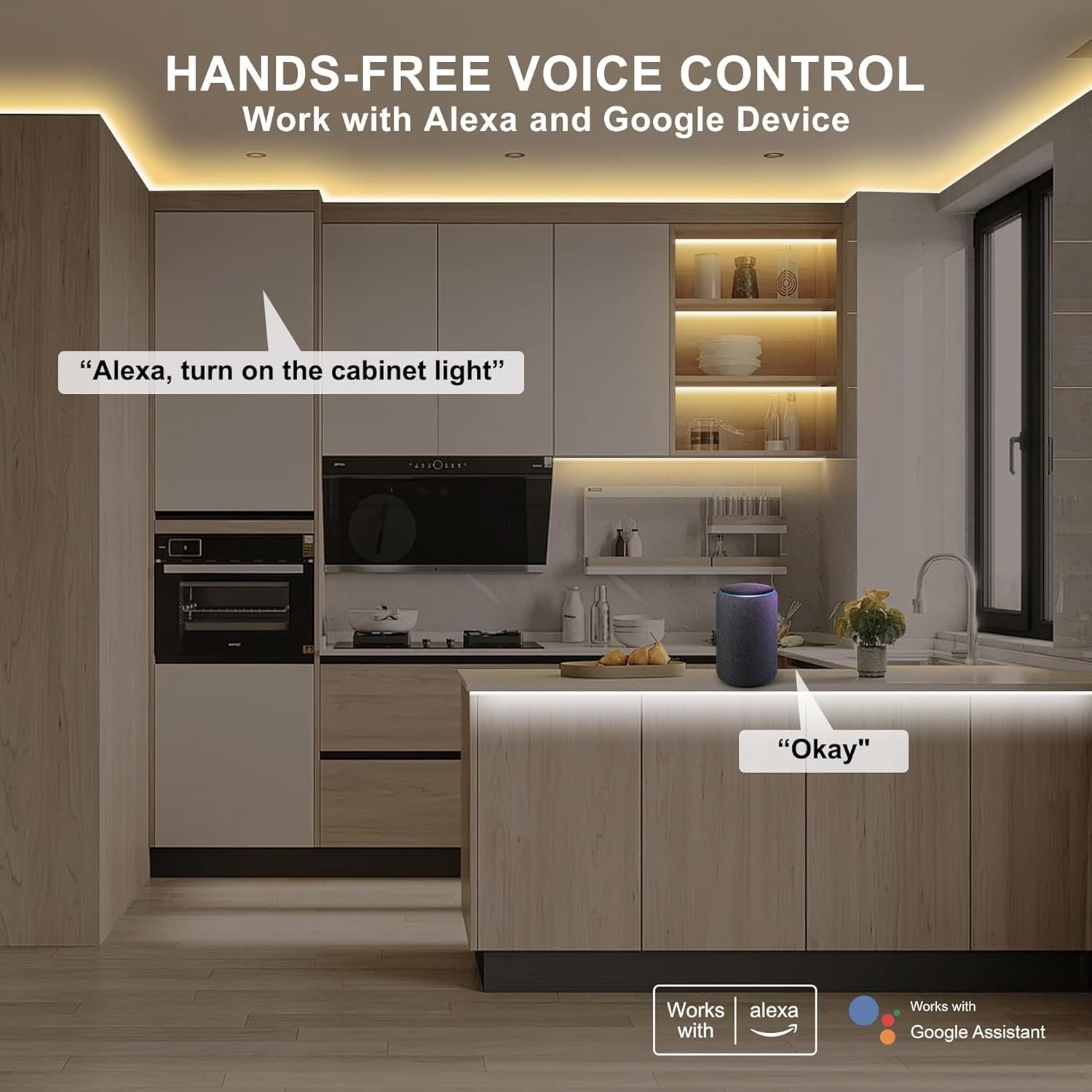 Smart Voice Control: Control the Led COB light strip kit with your ALEXA or GOOGLE device via voice commands