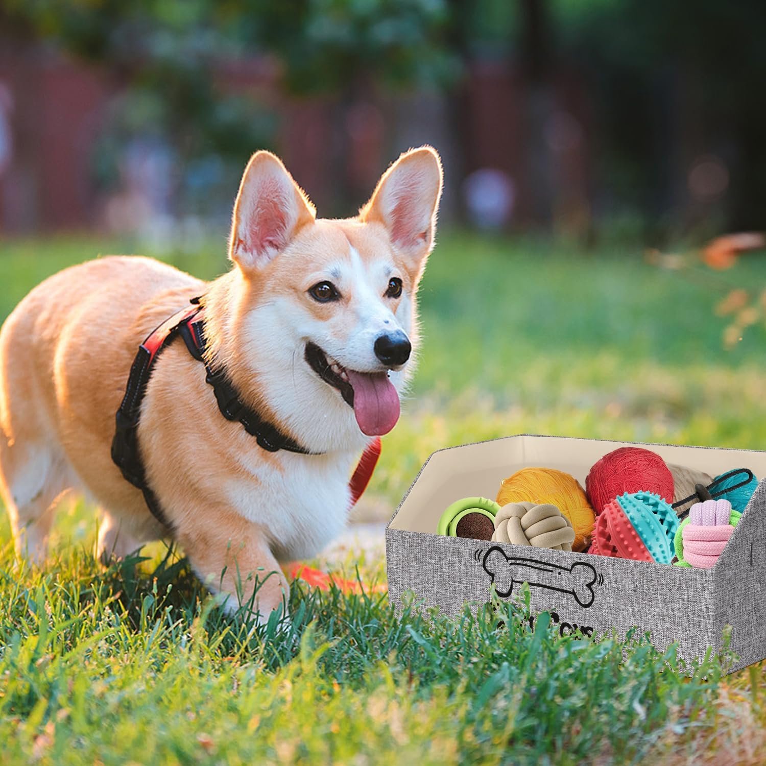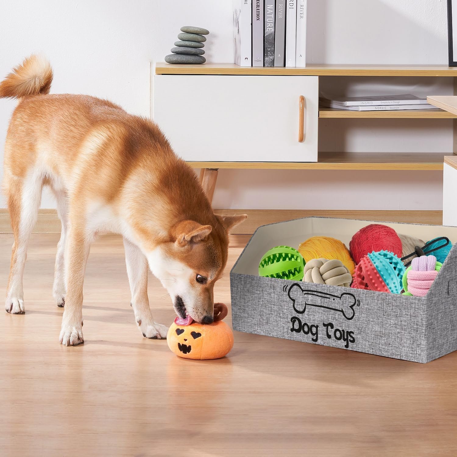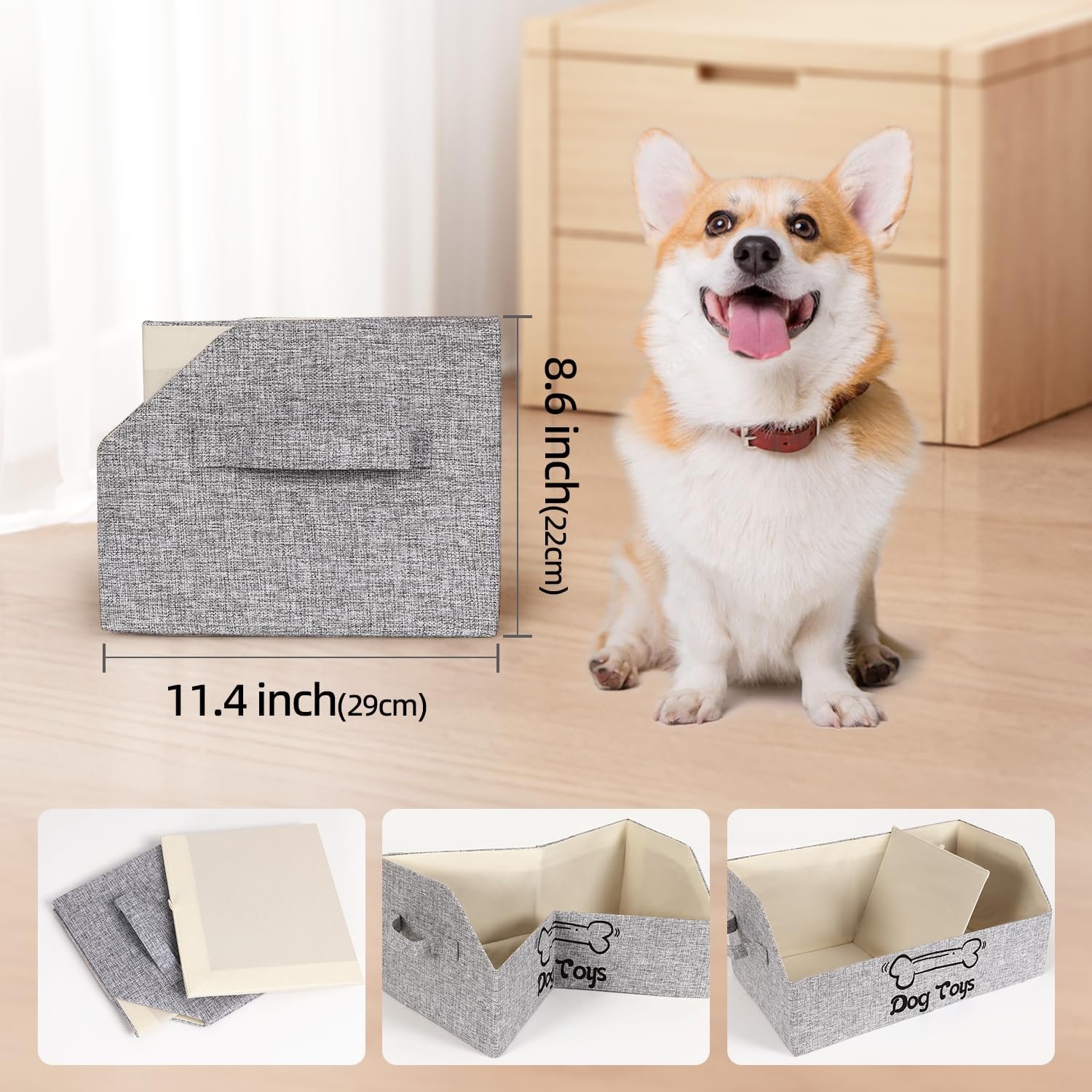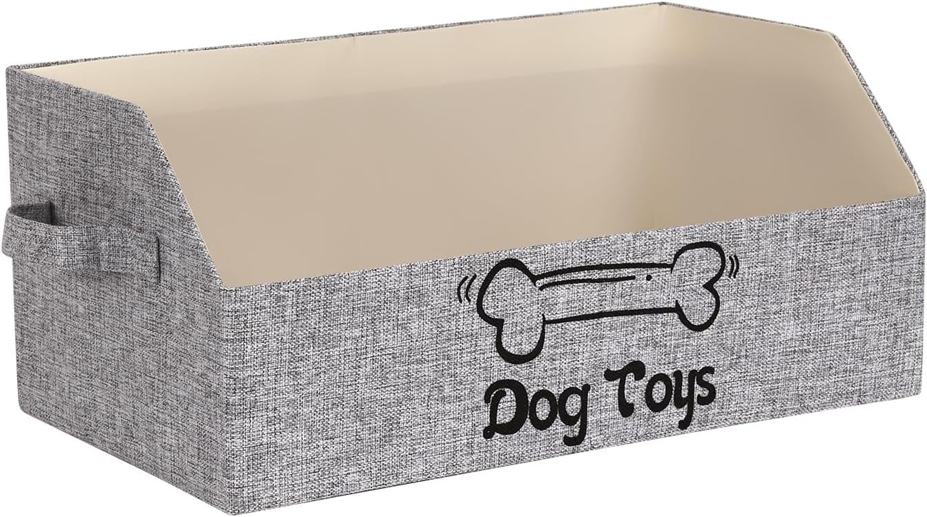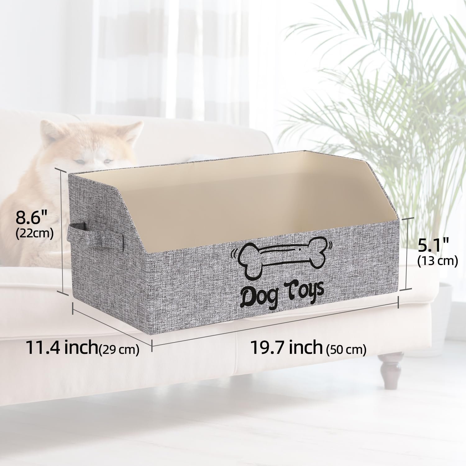 Premium Quality and Structure: Crafted from high-density linen fabric and reinforced with sturdy cardboard on all sides and the bottom, this pet toy bin is exceptionally durable and resists bending.