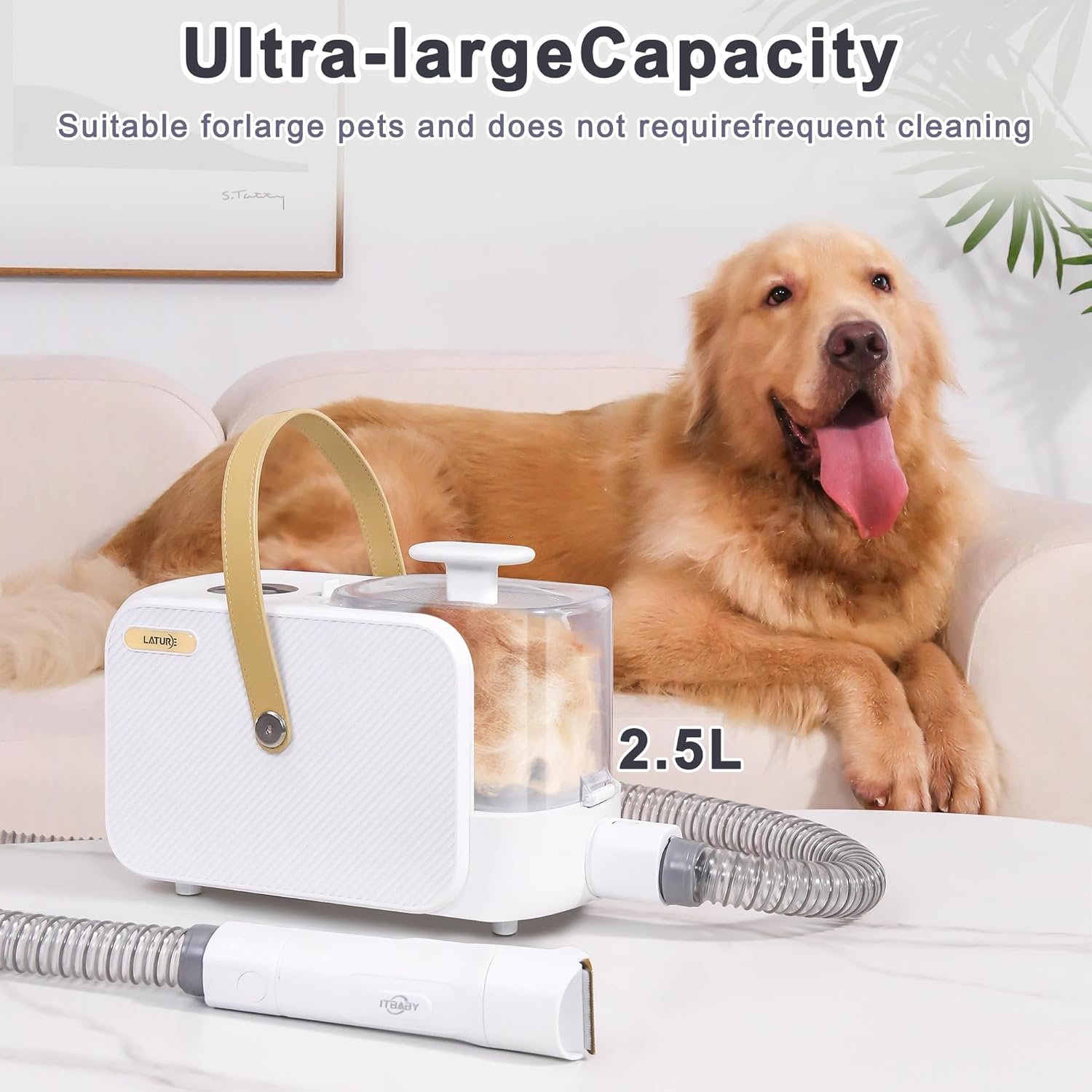 2.5L Dog Grooming Kit, Pet Grooming Kit & Vacuum Suction 99% Pet Hair Groomer, Professional Grooming Clippers with 8 Proven Grooming Tools for Dogs Cats, Quiet Pet Vacuum Groomer (White)