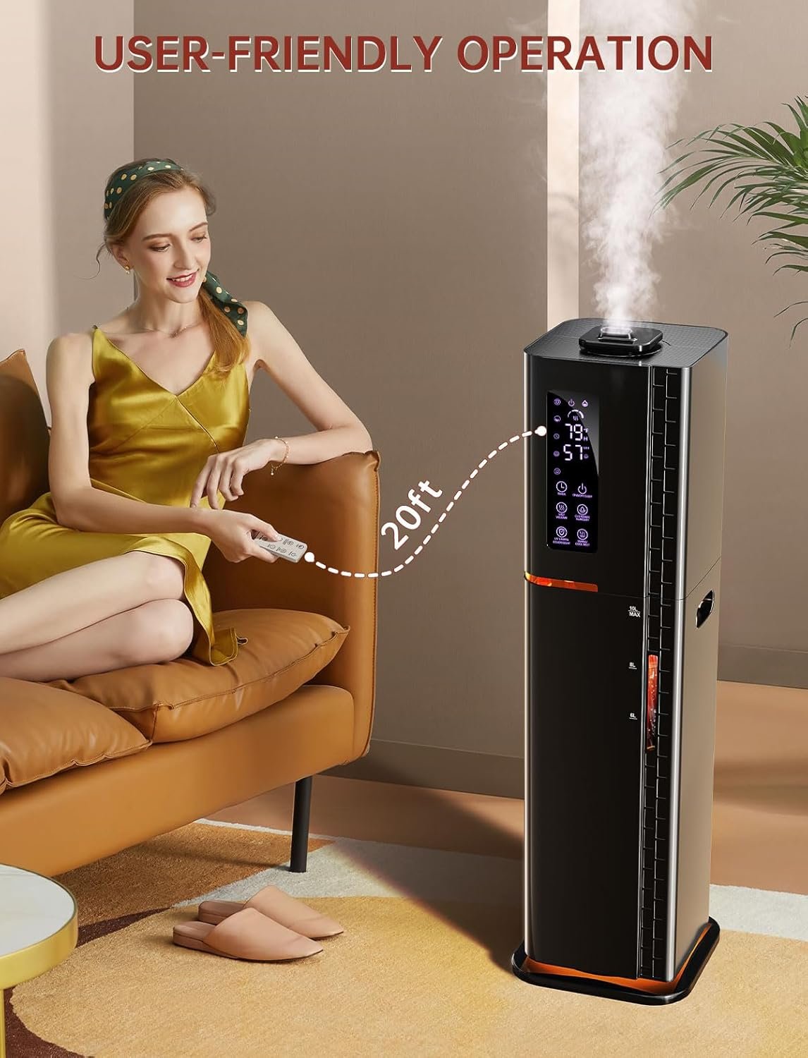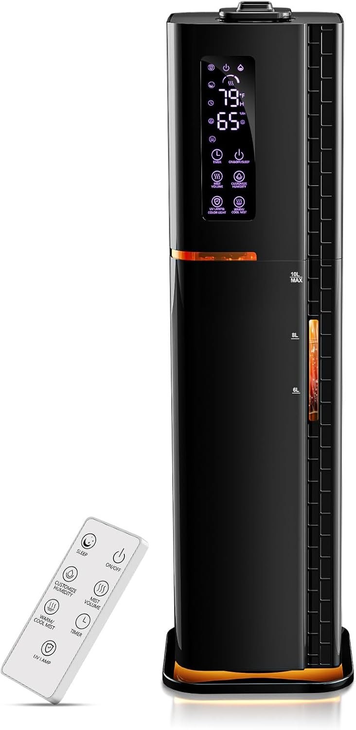 【One Humidifier for All Seasons!】This versatile humidifier features both cool and warm mist options, making it ideal for year-round use. Enjoy a refreshing cool mist during hot summer days, while the soothing warm mist provides comfort during chilly winter nights. Its gentle formula is skin-friendly and disperses quickly for maximum relief. Additionally, this humidifier includes several thoughtful design :1.Top-Fill Design; 2.Visual Water Level Window; 3.LED Control Panel; 4.Remote Control.