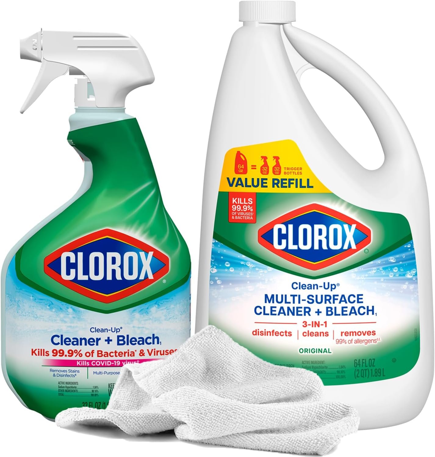 2 CleanUp Cleaner with Bleach | 32oz Spray Bottle, 64oz Refill Jug, & Daley Mint Towel | Multi Purpose Bleach Cleaners for Janitorial, Commercial, Industrial (96oz Total)