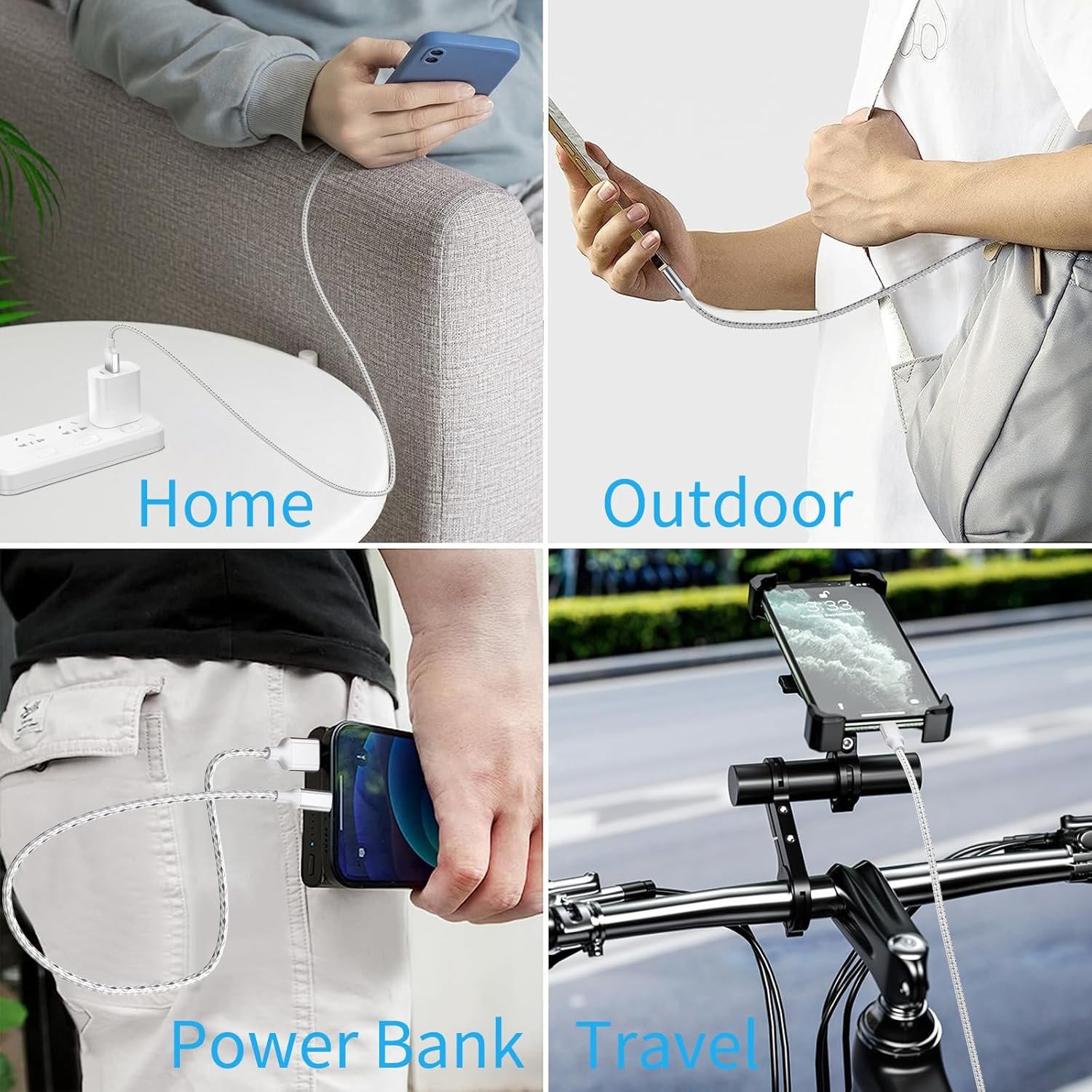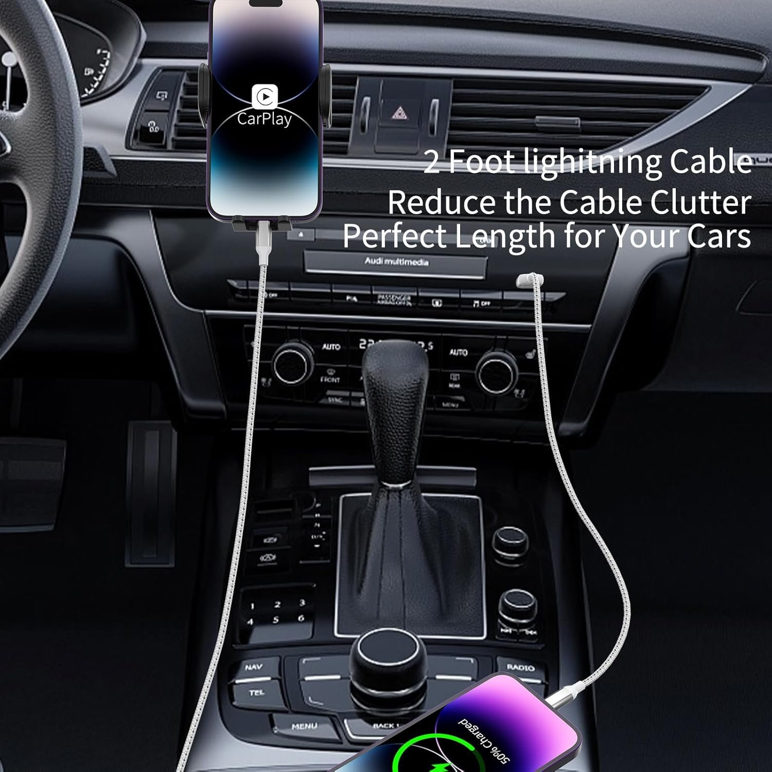 【Portable Length 2 Foot】iPhone charging cord 2ft is the perfect length for your cars or trucks without having too much extra wire to tangle or coil up, 2ft lightning cable is great for car charging and apple play plug without all the extra length. USB iPhone charger cable 2 ft will reduce the cable clutter on desk, easy to carry with power bank while hiking.