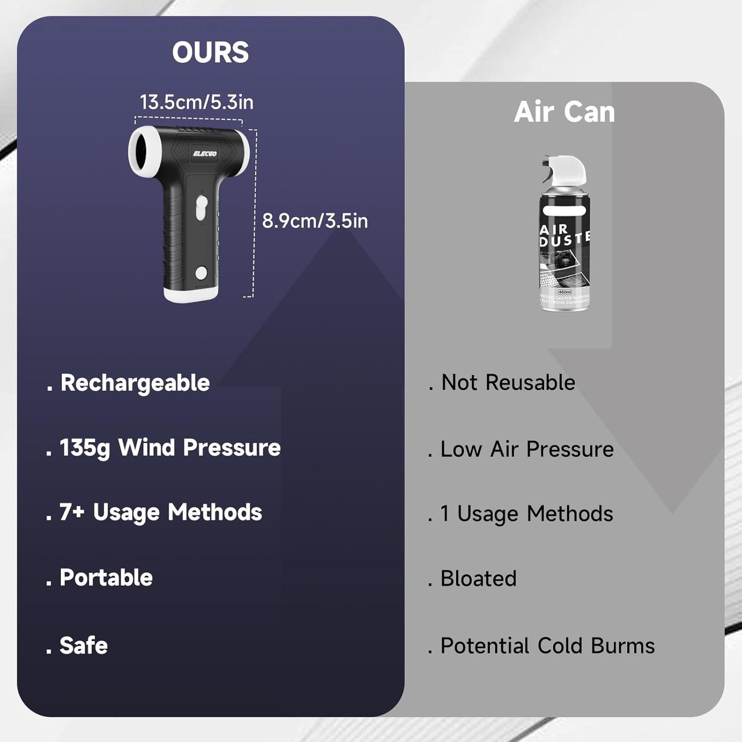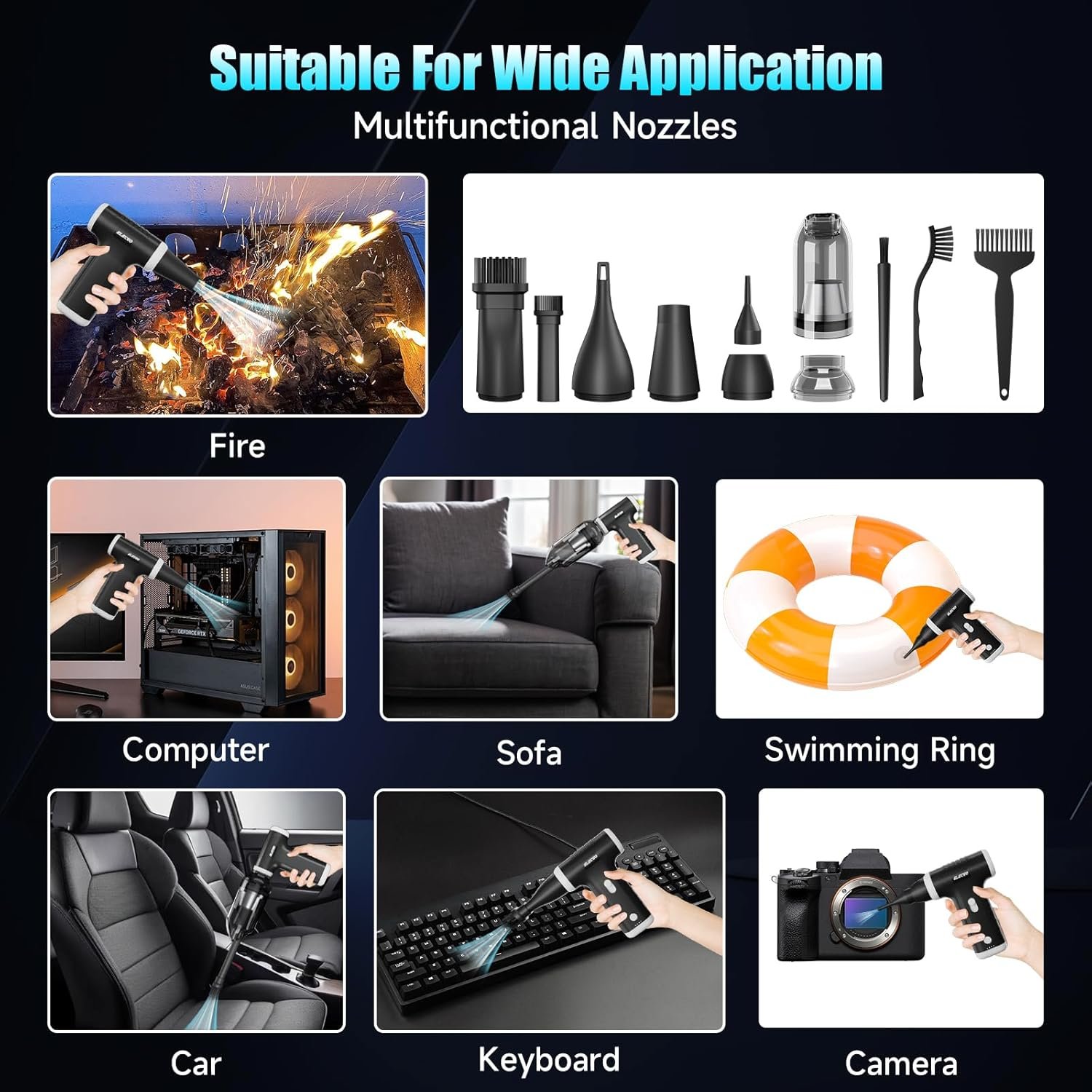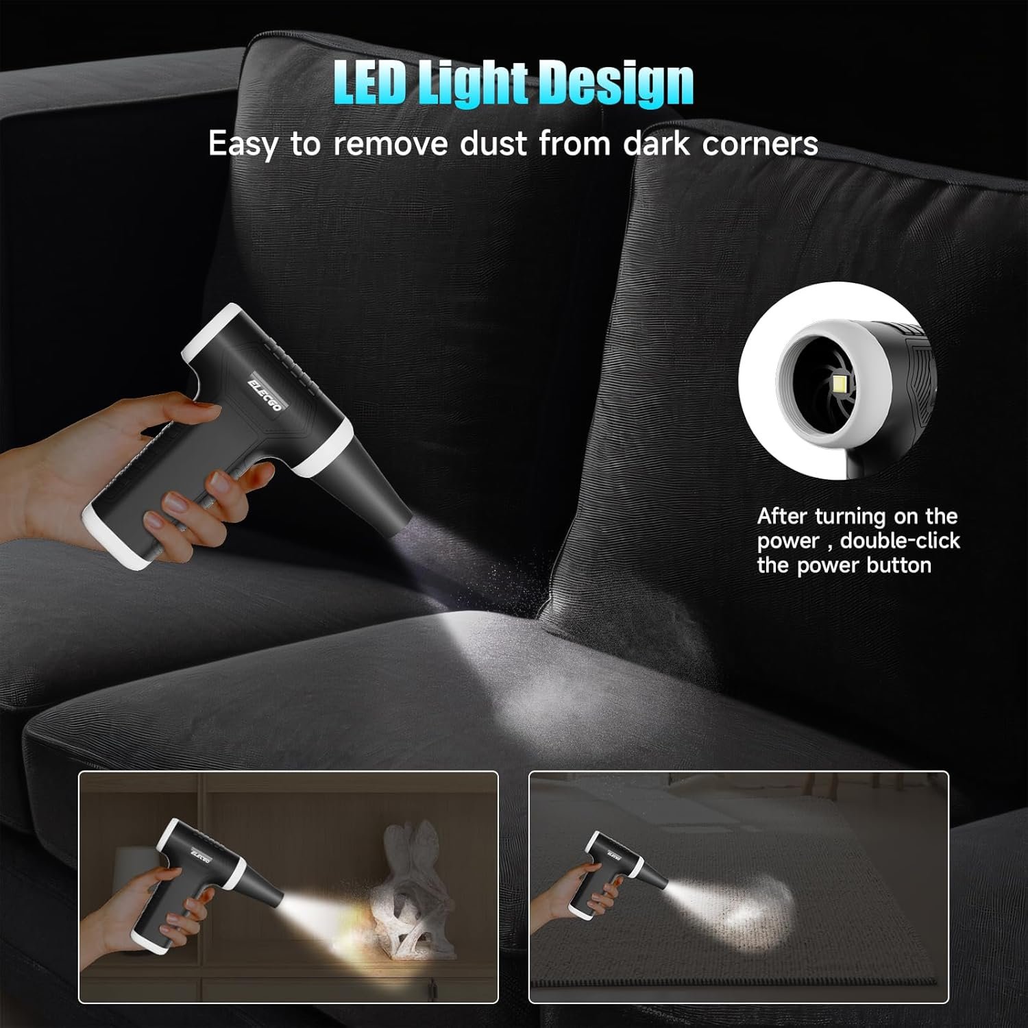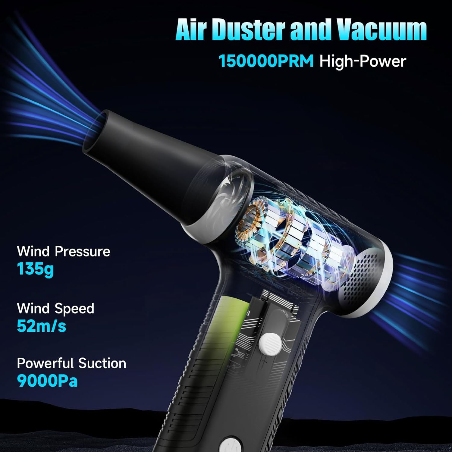 Unmatched Power with 150,000 RPM Motor: Experience unparalleled cleaning performance with ELECGO electric blower and vacuum cleaner, featuring a high-speed motor that spins at an astonishing 150,000 RPM. This powerful motor generates a maximum airspeed exceeding 52m/s, ensuring thorough and efficient dust removal from any surface. Whether you’re tackling stubborn dirt or delicate surfaces, this tool delivers the strength you need