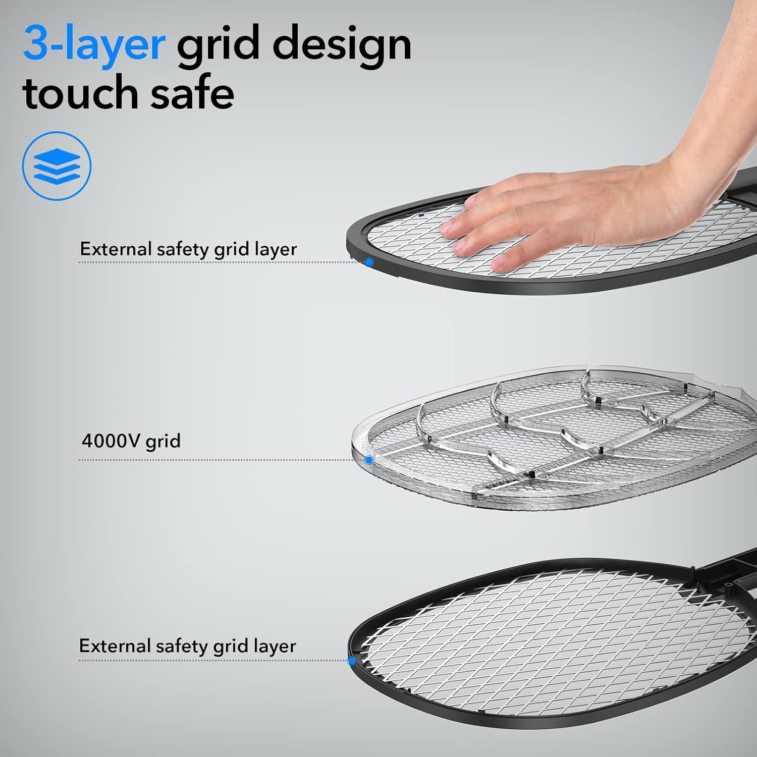 DEEZEE electric fly swatter is powered by a 1200mAh rechargeable battery, which can meet the needs of automatic and manual dual modes and is suitable for indoor and camping use.