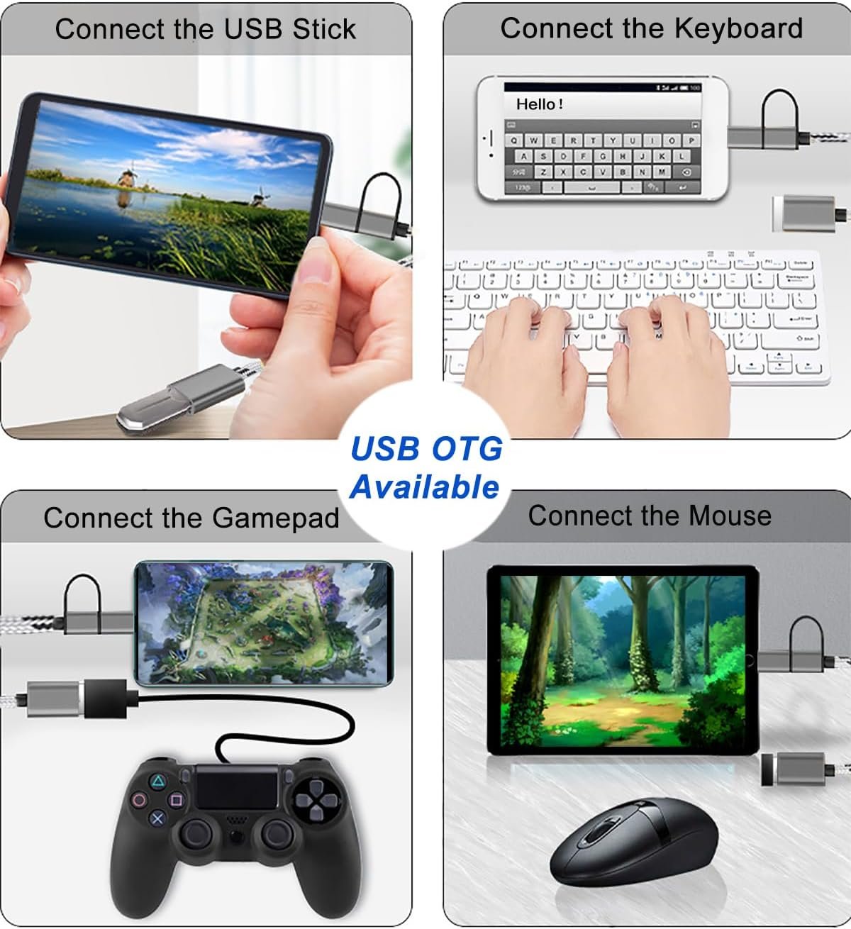 USB OTG adapter. Plug-and-Play, efficient transmission. It works with USB sticks, keyboards, gamepads, mice and more. Transfer photos, videos, files and other data at high speed.