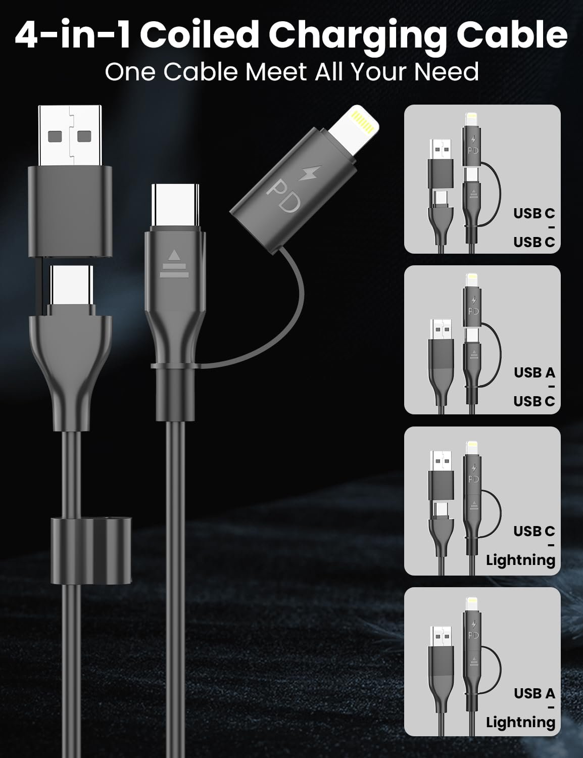Car Accessories: Keep your car console tidy and organized with our coiled cable. This iPhone 15 cable extends up to 2-3 feet when needed and smoothly retracts to its original 1-foot length, preventing cable clutter and tangles.