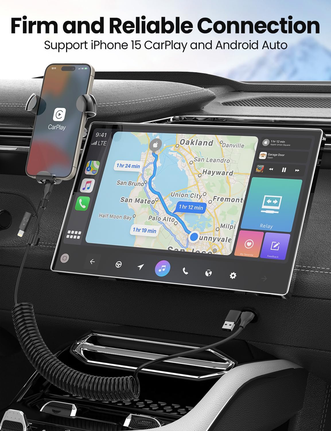 CarPlay Cable: This short USB-C cable ensures a reliable and firm connection while driving, allowing you to get directions, answer calls, and listen to music effortlessly with full Apple CarPlay support and Android Auto compatibility.
