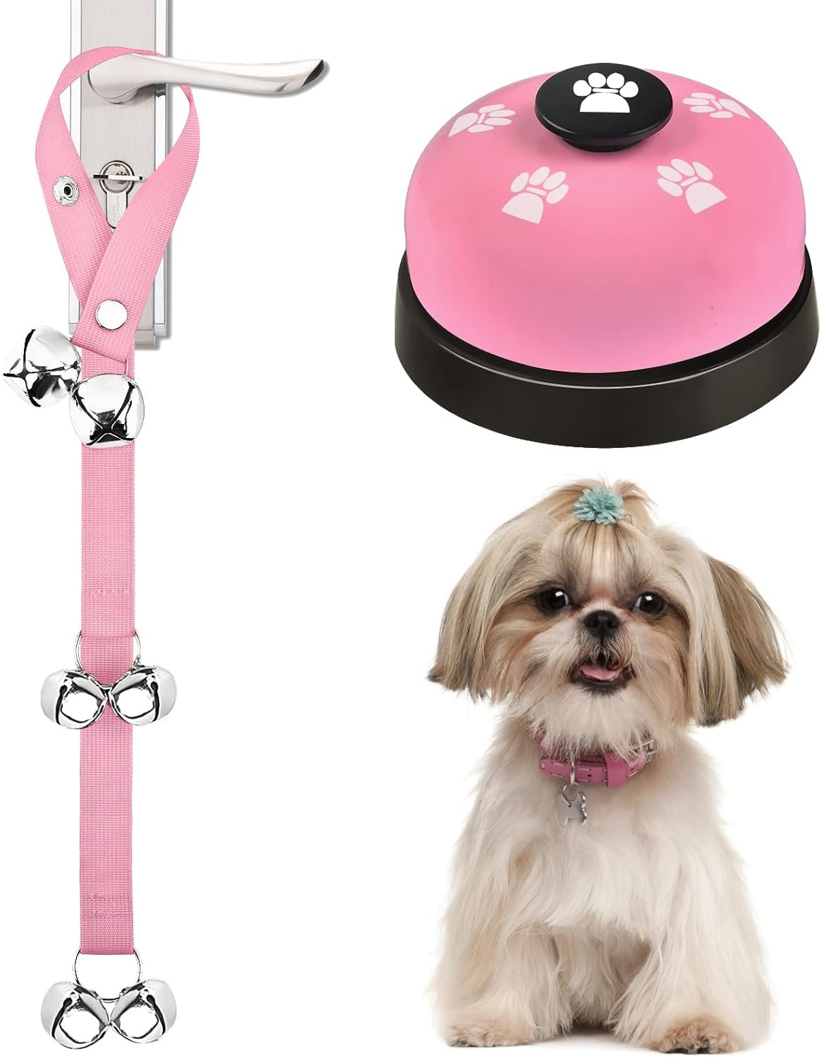 2 Pack Dog Doorbells, Pet Training Bells for Go Outside Potty Training and Communication Device Large Loud Dog Bell Cat Puppy Interactive Toys Adjustable Strap Door Bell (Pink)