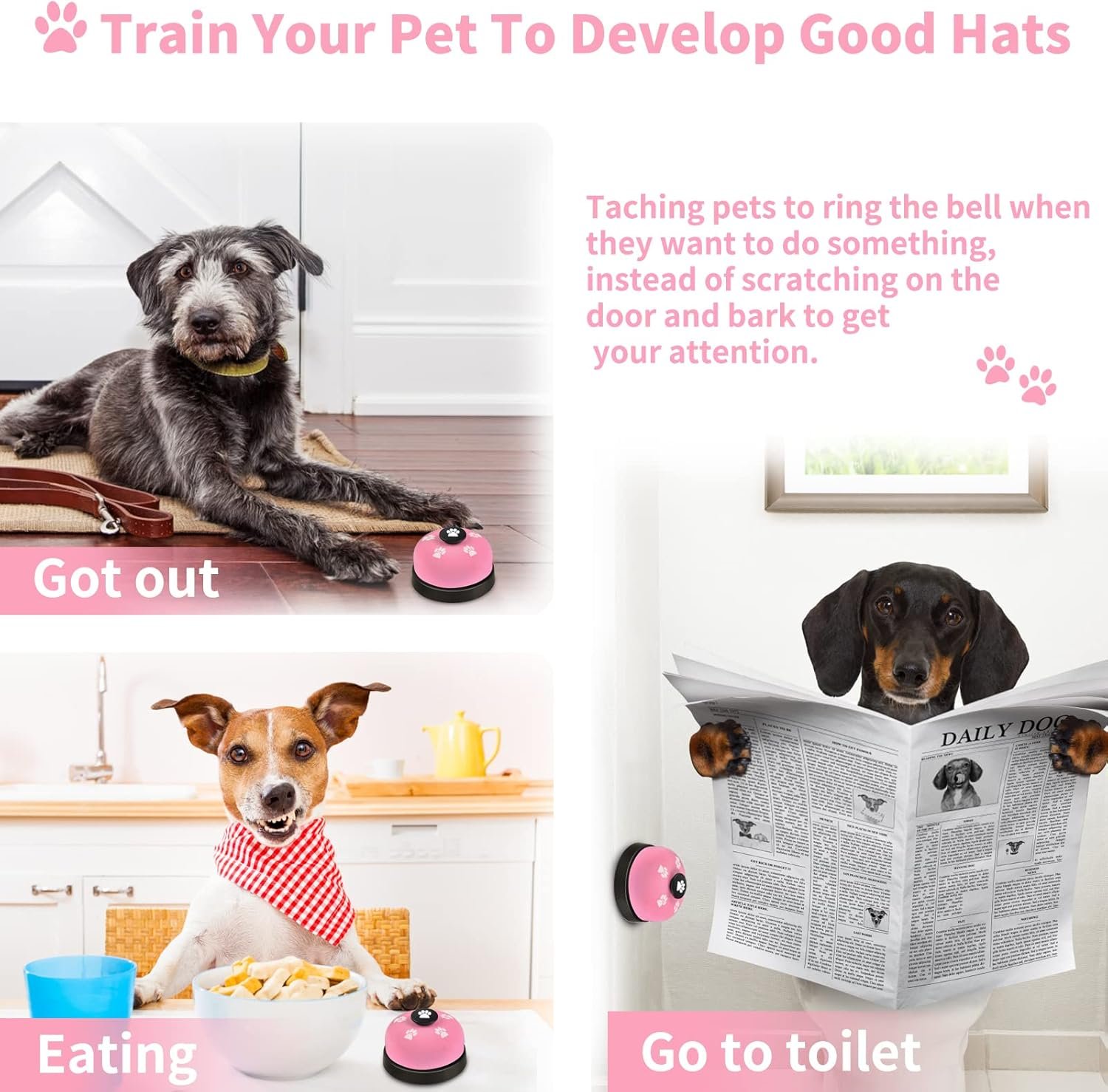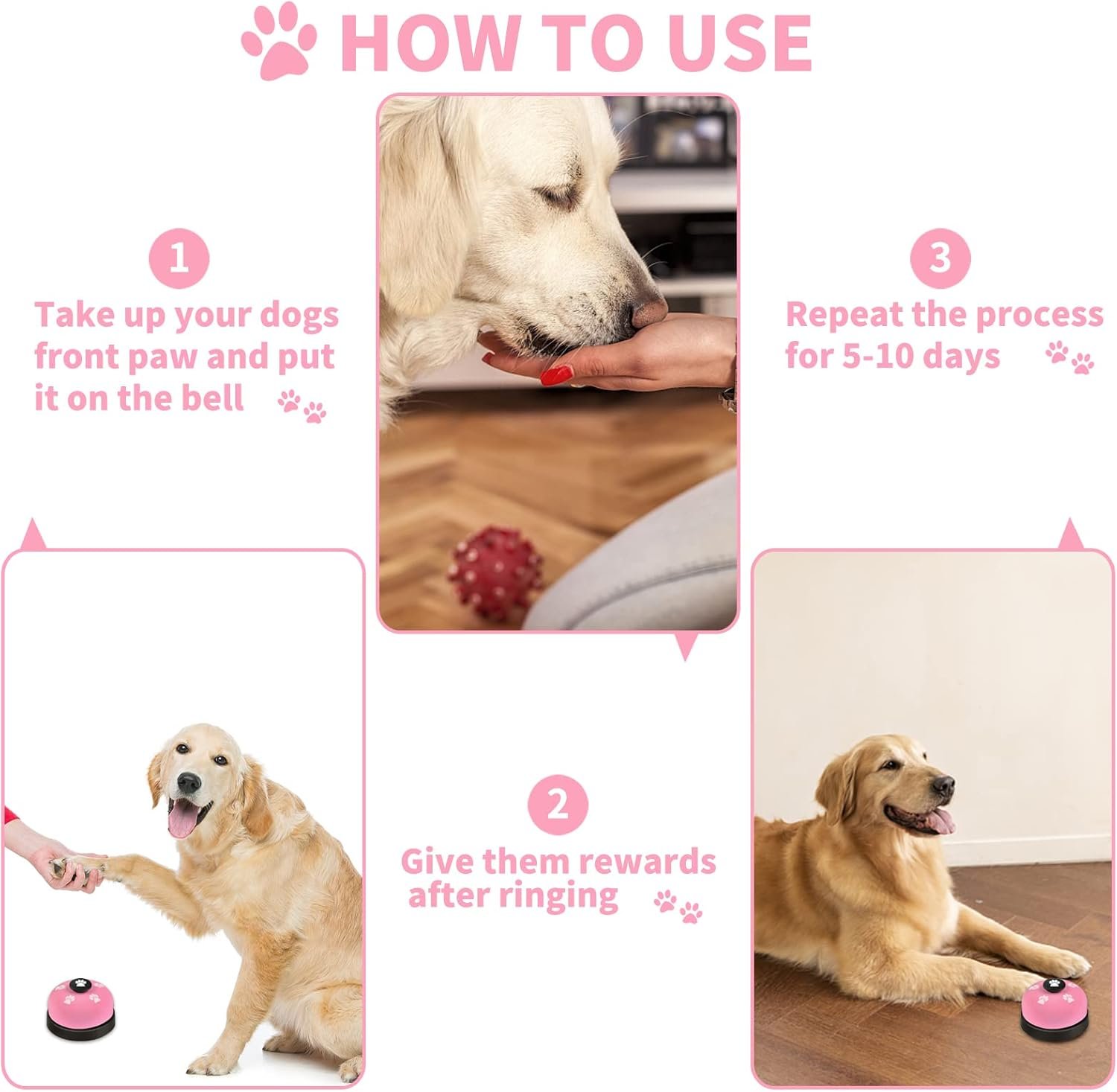 🔔 Ideal Training Gadget: Ideal training gadget to treats game, potty training, housetraining and housebreaking for your pets, and it also can be desk call bells when you are in stores, hotel, pub, restaurants, etc.