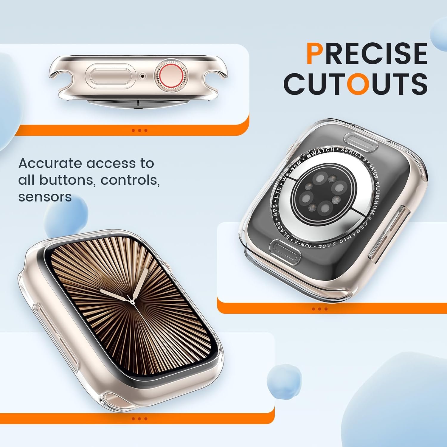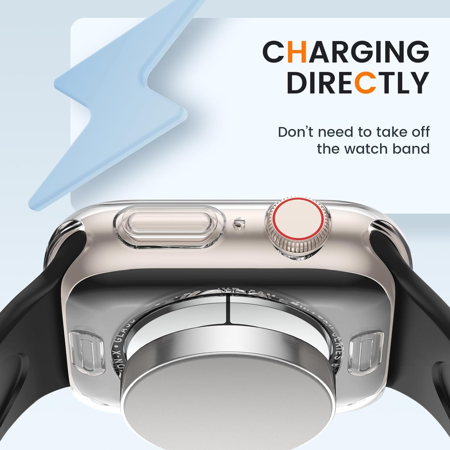 Lightweight & Slim: Ultra-slim and lightweight for comfortable wear; Flexible materials of the Apple Watch cover for easy installation and removal; Make sure you align the square part of the screen side, and the round part with the charging side
