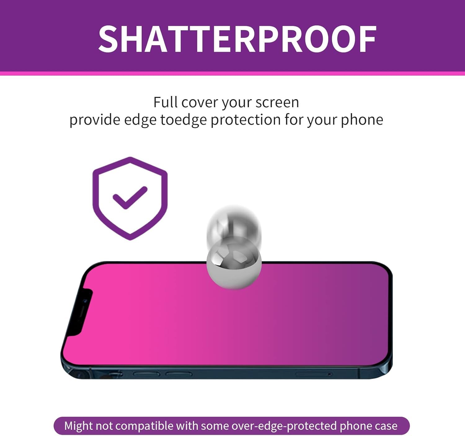 [Face ID Compatible & Easy Installation] This screen protector film works perfectly with iphone 12promax, it does not interfere with the Face ID feature. With the mounting frame, just put the protector on the screen, the tempered glass will attach to the screen easily and perfectly by aligning the edges.
