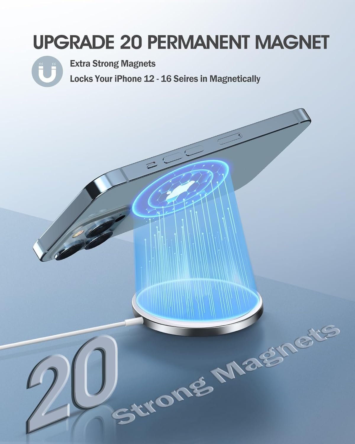 MAGNETIC ALIGNMENT & STRONG ADSORPTION: Whether you’re working, playing games, watching movies, listening to music, or just chatting, the magnetic wireless charging pad allows the magnets to attach to your iPhone perfectly. The magnetic charging feature allows the Mag charger to align perfectly with your phone Strongly attached magnets allow you to charge with confidence. ❌Note: Regular cases are not supported for it will weaken the magnetic adsorption.