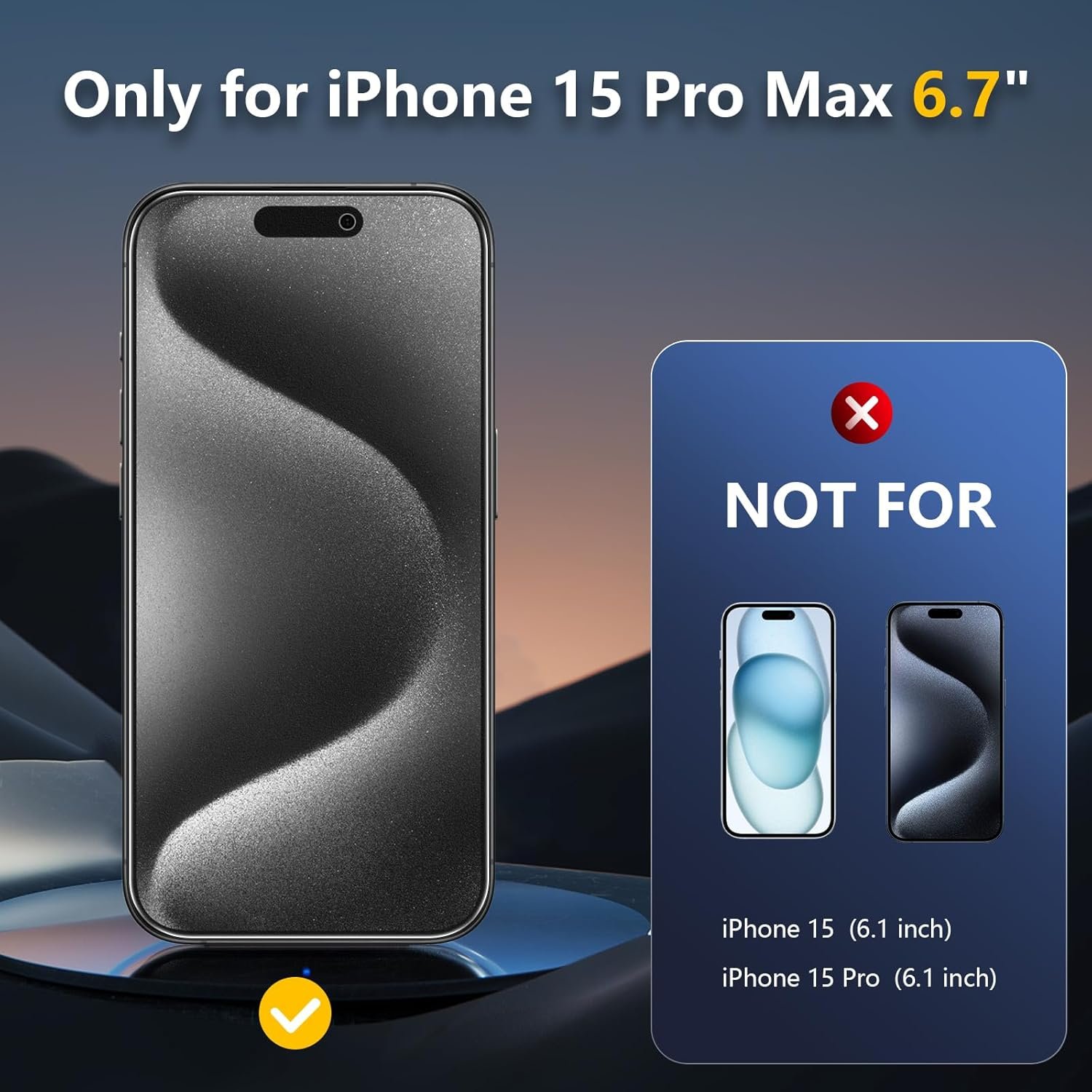 【Compatible Models】iPhone 15 Pro Max Matte Screen Protector. Includes tempered glass screen protector*2, cleaning kit*2, and alignment frame*1.