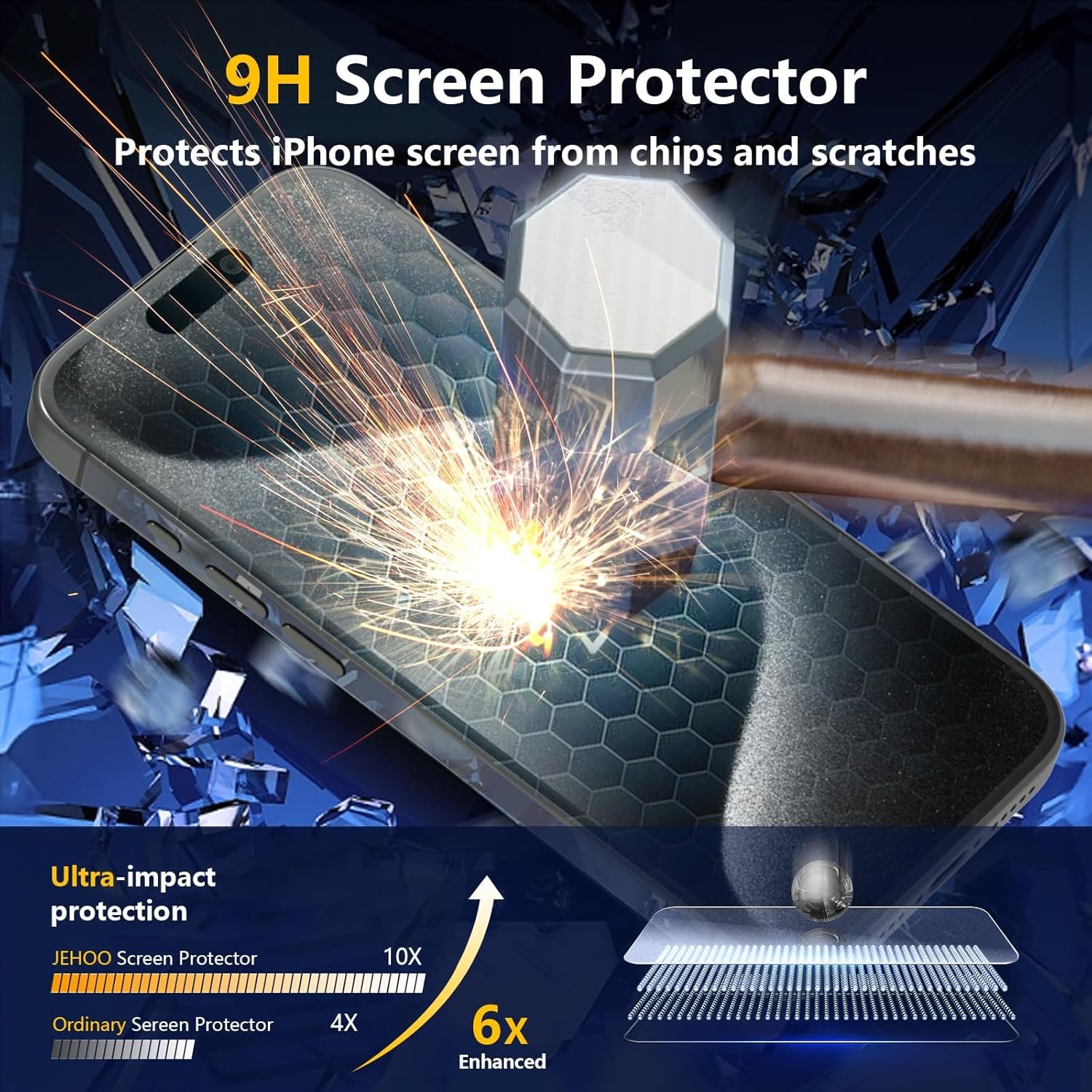 【Anti-Scratch】Highly protects the screen from scratches and abrasions, 9H hardness, reducing the risk of knives, keys and other hard substances.