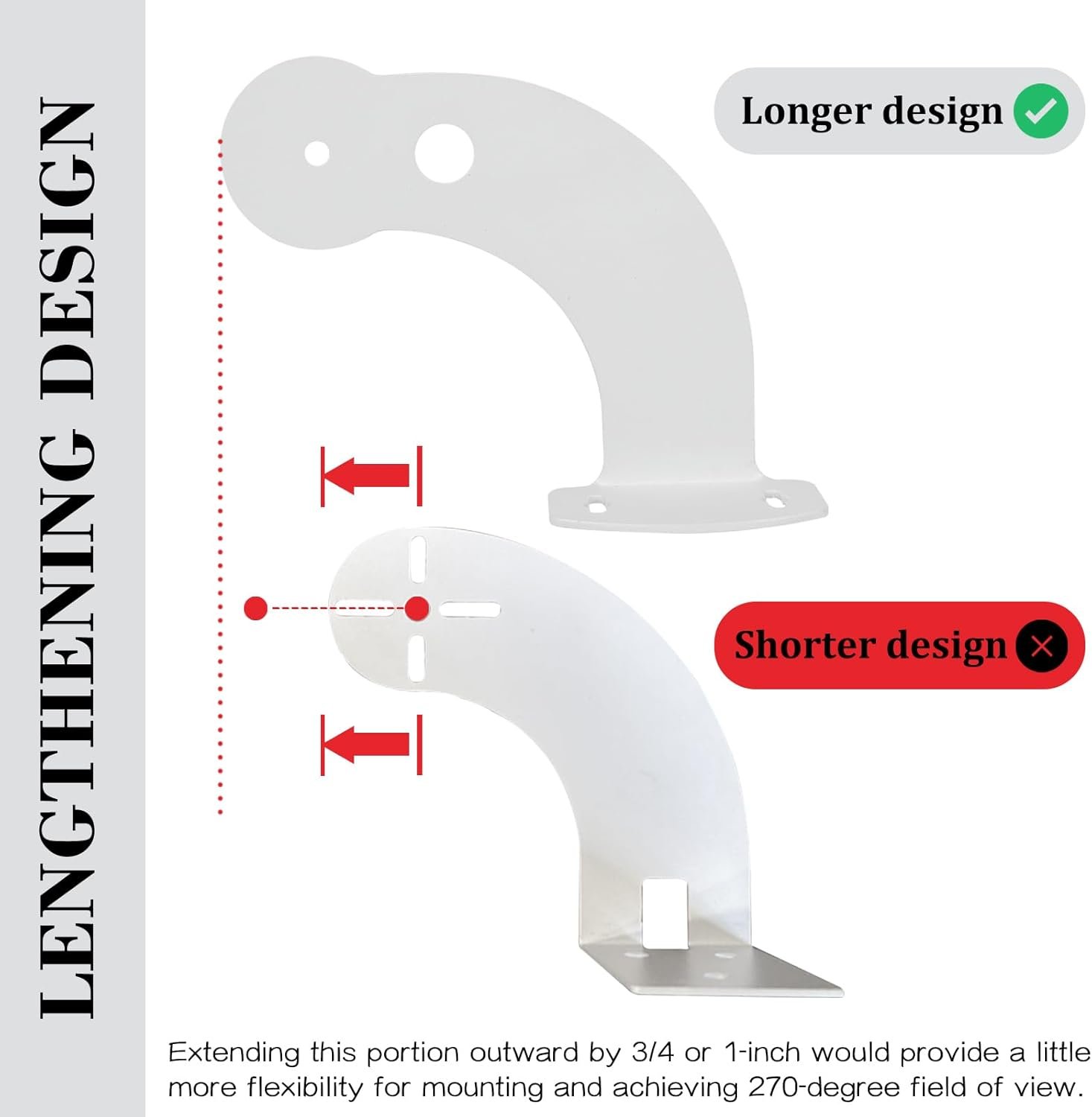 Comprehensive Coverage – Specially designed for Wyze Cam Pan V3/V2 and Wyze Cam V4/V3/V2,the Voyaux mount’s extended curved design enables your camera to monitor both adjacent walls effectively. When mounted in a corner, it provides wide coverage with reduced blind spots, enhancing your home’s security