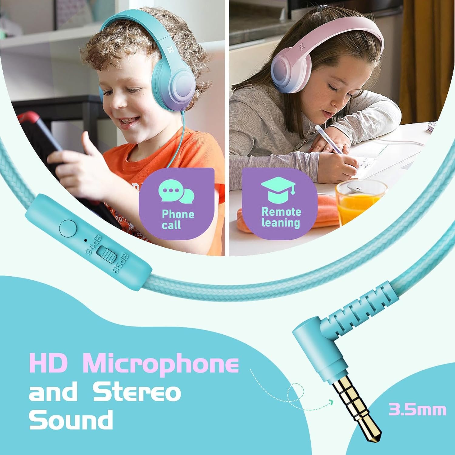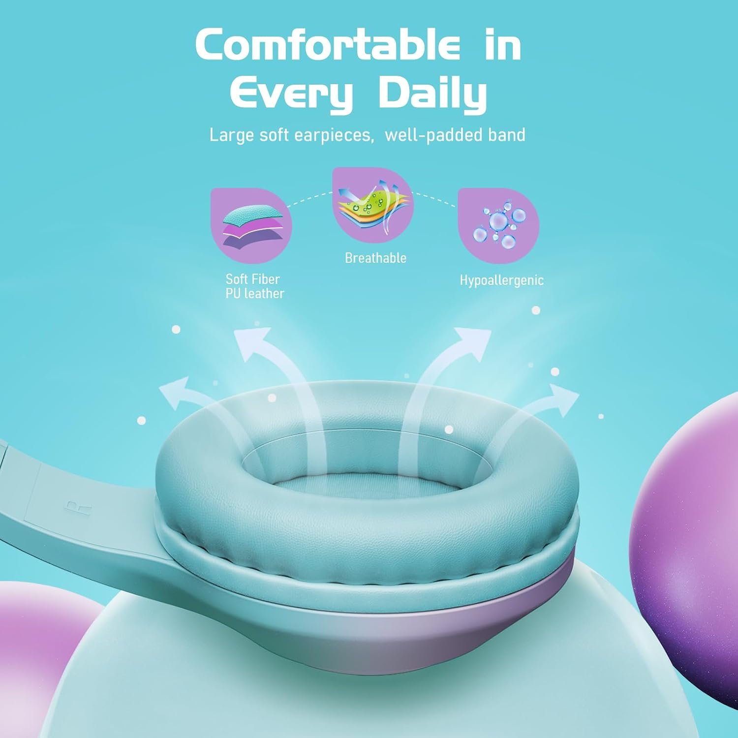 【94dB Volume Limit Headphones for Kids】The sensitivity on our headphones for girls has been adjusted to Maximum 94dB. Your kids can hear with clarity and safety no matter at school, travelling, or having online courses.