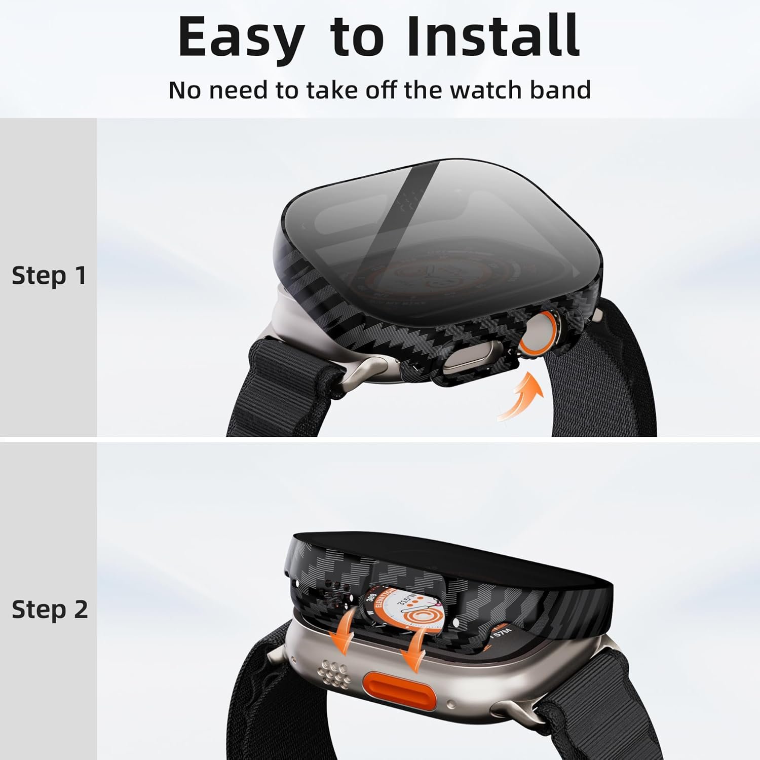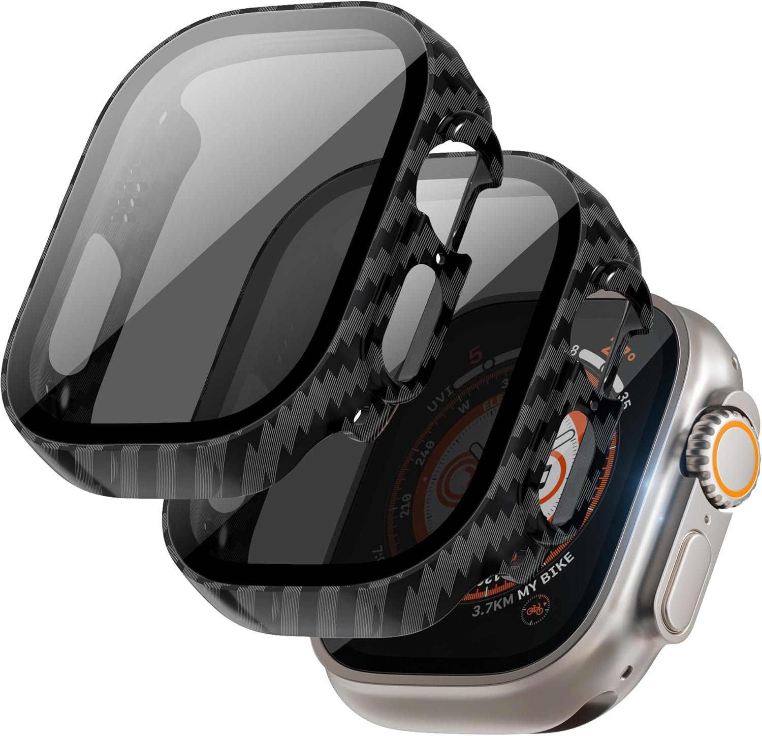 2 Pack Privacy Case for Apple Watch Ultra 2/Ultra 49mm, [Anti-Peeping] Tempered Glass Screen Protector Full Protection Anti-scratch Cover for iWatch Ultra 2/ Ultra 49mm, Carbon Fiber