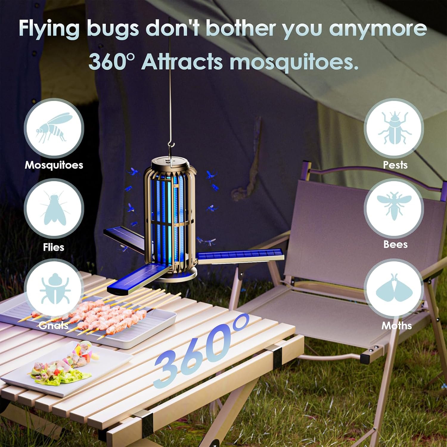 【Long-lasting Battery Life】Equipped with a 3600mAh rechargeable battery, the TIENBE Solar Bug Zapper ensures a mosquito-free night without the need for constant charging. Enjoy a peaceful sleep and protect your house pet from flying pests.