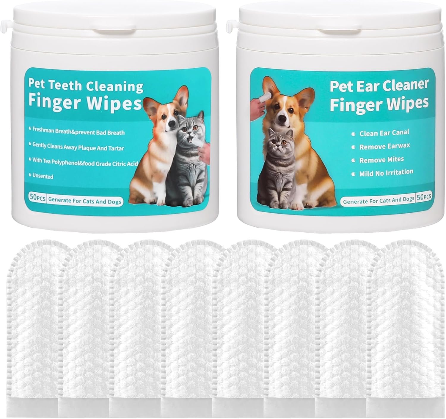Easy to Use: This pet care kit is extremely user-friendly. Simply extract a wipe, fit it on your finger, and delicately wipe your pet’s teeth and ears. It suits all sizes of cats and dogs without extra tools or brushes.